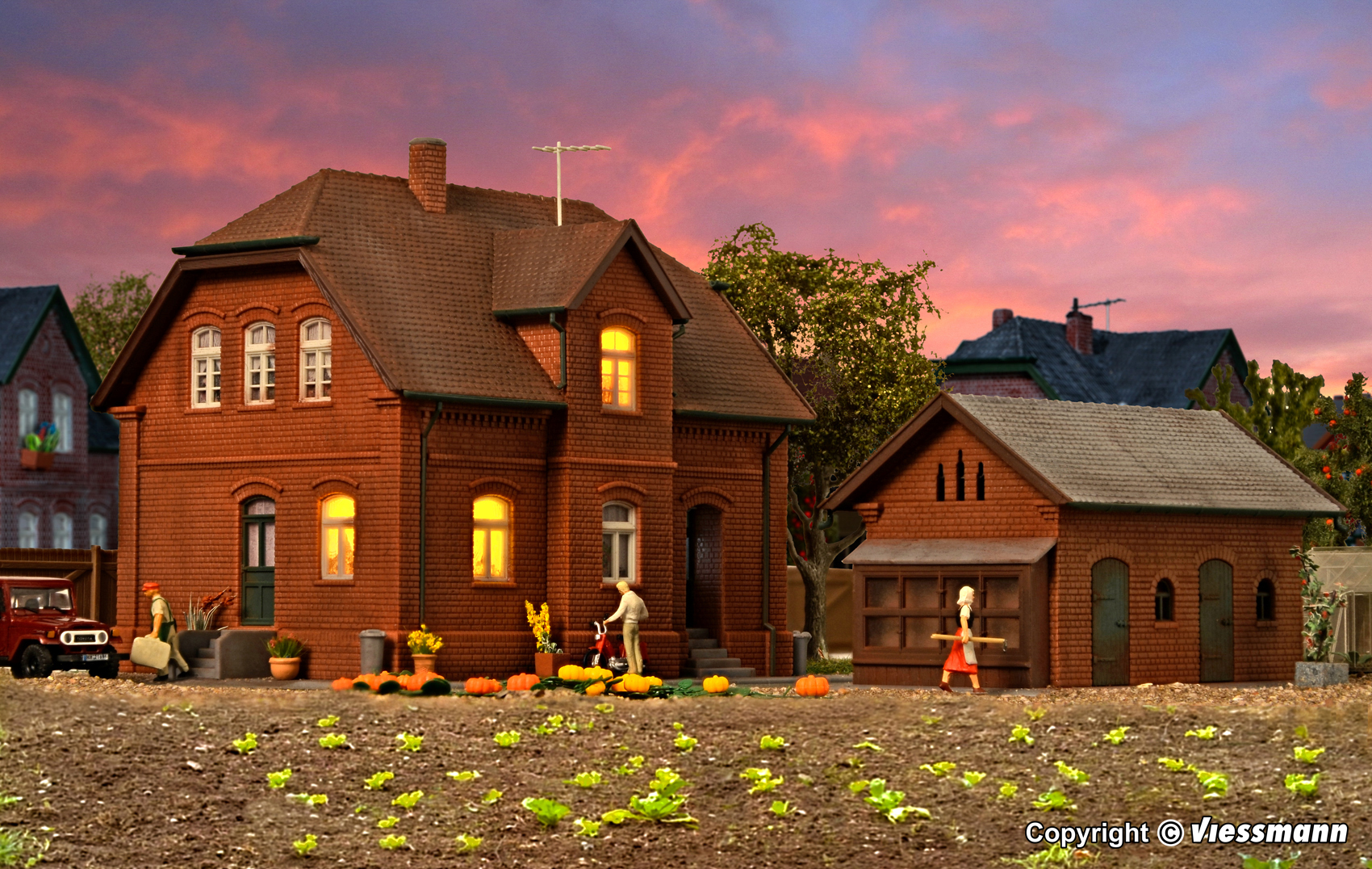 Bausatz. Das Nebengebäude beherbergt einen Taubenschlag mit Ausflugsluke auf dem Dach. Maße Haupthaus: L 16 x B 13,5 x H 12,5 cm, Nebengebäude: L 11 x B 7 x H 6 cm. Schwierigkeitsgrad: 2 (Fortgeschrittene).