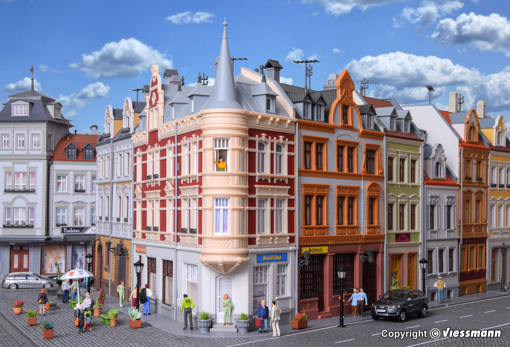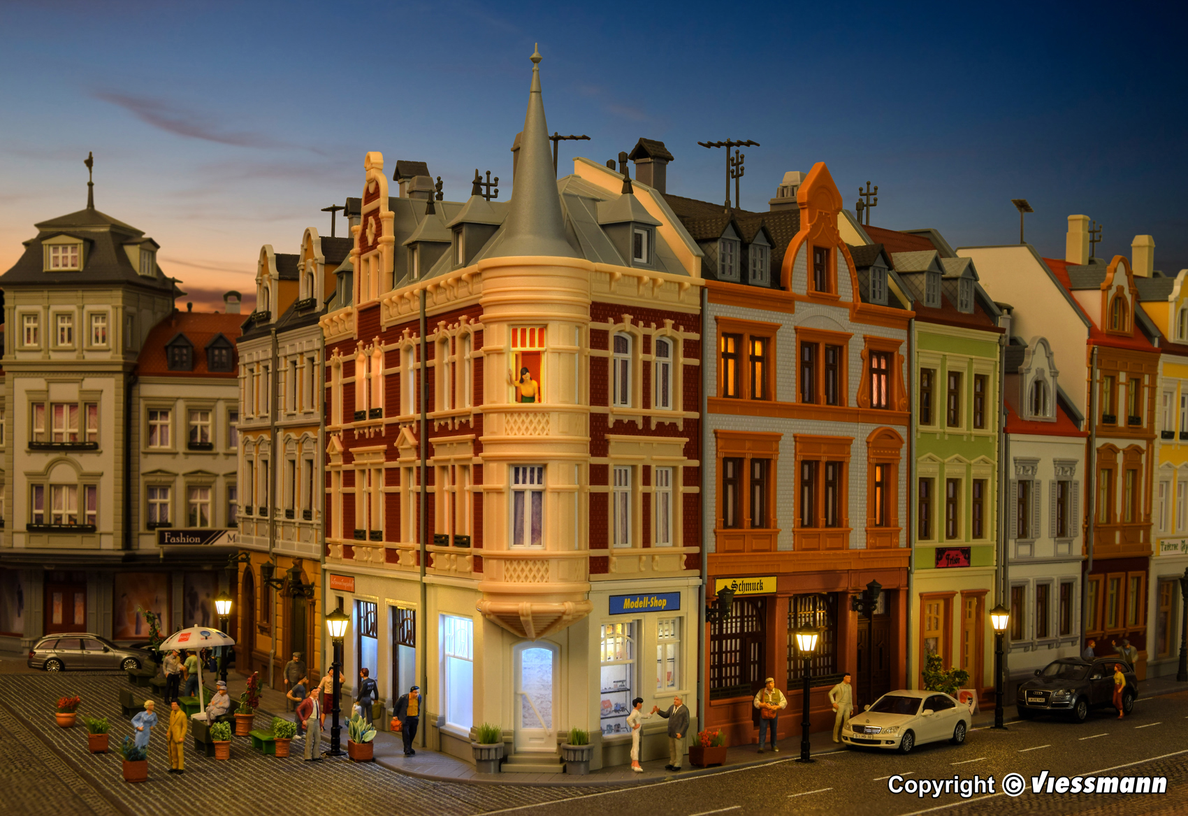 Funktionsbausatz. Am offenen Turmfenster steht eine winkende Frau (ohne Funktion). Die Figur und die passende LED-Beleuchtung für ein Fenster liegen dem Bausatz bei. Sie ist einfach zu montieren und genau auf das Modell abgestimmt.