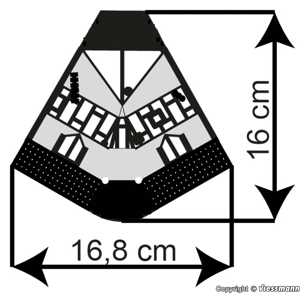 Bausatz. Mit Stecksystem. Hergestellt im Zweifarben-Spritzgießverfahren. Gebäudewinkel aus der Betrachtersicht: 120°. Maße: L 16,8 x B 16 x H 19,5 cm. Schwierigkeitsgrad: 2 (Fortgeschrittene).