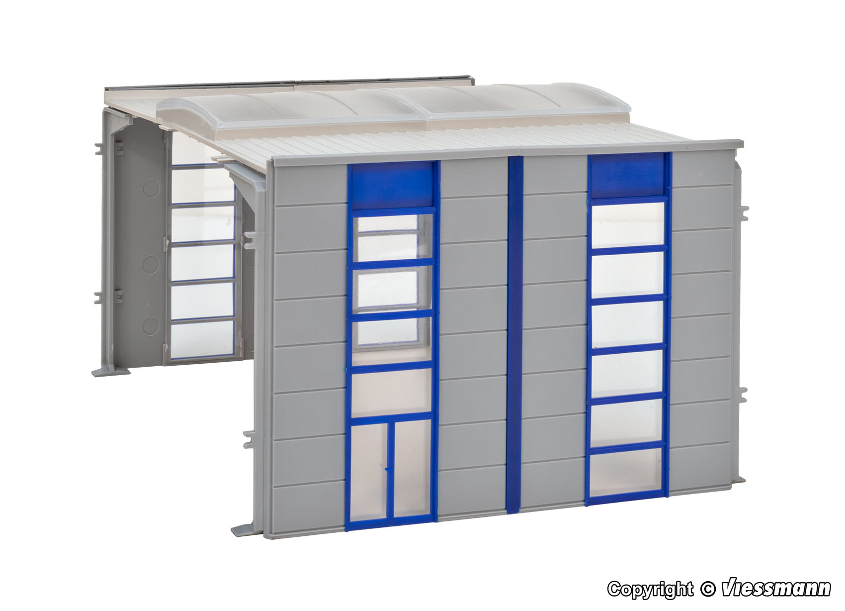 Bausatz. Erweiterungs-Set zur individuellen Verlängerung der Lager-/ Industriehalle, Art. 39250 (je Feld ca. 7 cm). Inhalt: Je 2 Elemente für beide Seiten und Dachteile.