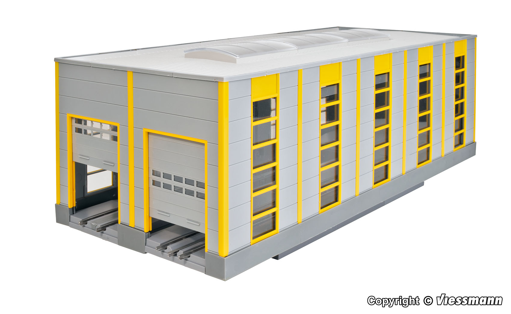 Bausatz. Mit durchgehender Wartungs- und Reparaturgrube. Durchgehend befahrbar mit 2- oder 3-Leiter Fahrzeugen. Schienenprofile sind im Lieferumfang enthalten. Die beiden Rolltore sind vormontiert und zum manuellen Aufrollen geeignet. Die Halle kann mit dem Erweiterungs-Set, Art. 39253 beliebig verlängert werden. Das Dach ist abnehmbar.