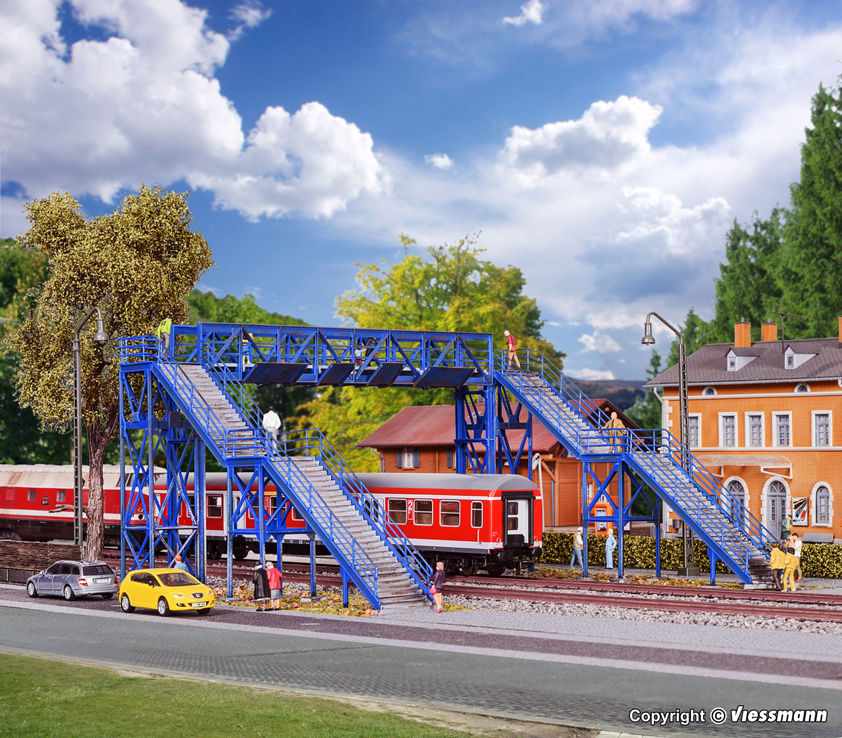 Bausatz. Die beiden Treppenaufgänge sind in verschiedenen Varianten aufbaubar. Geeignet für Modellgleise und Märklin C-Gleis. ICE-Erhöhung liegt bei. Durchfahrtshöhe: 9 cm. Durchfahrtsbreite: 16 cm. Maße: L 23-57 x B 20 x H 12 cm. Schwierigkeitsgrad: 2 (Fortgeschrittene).