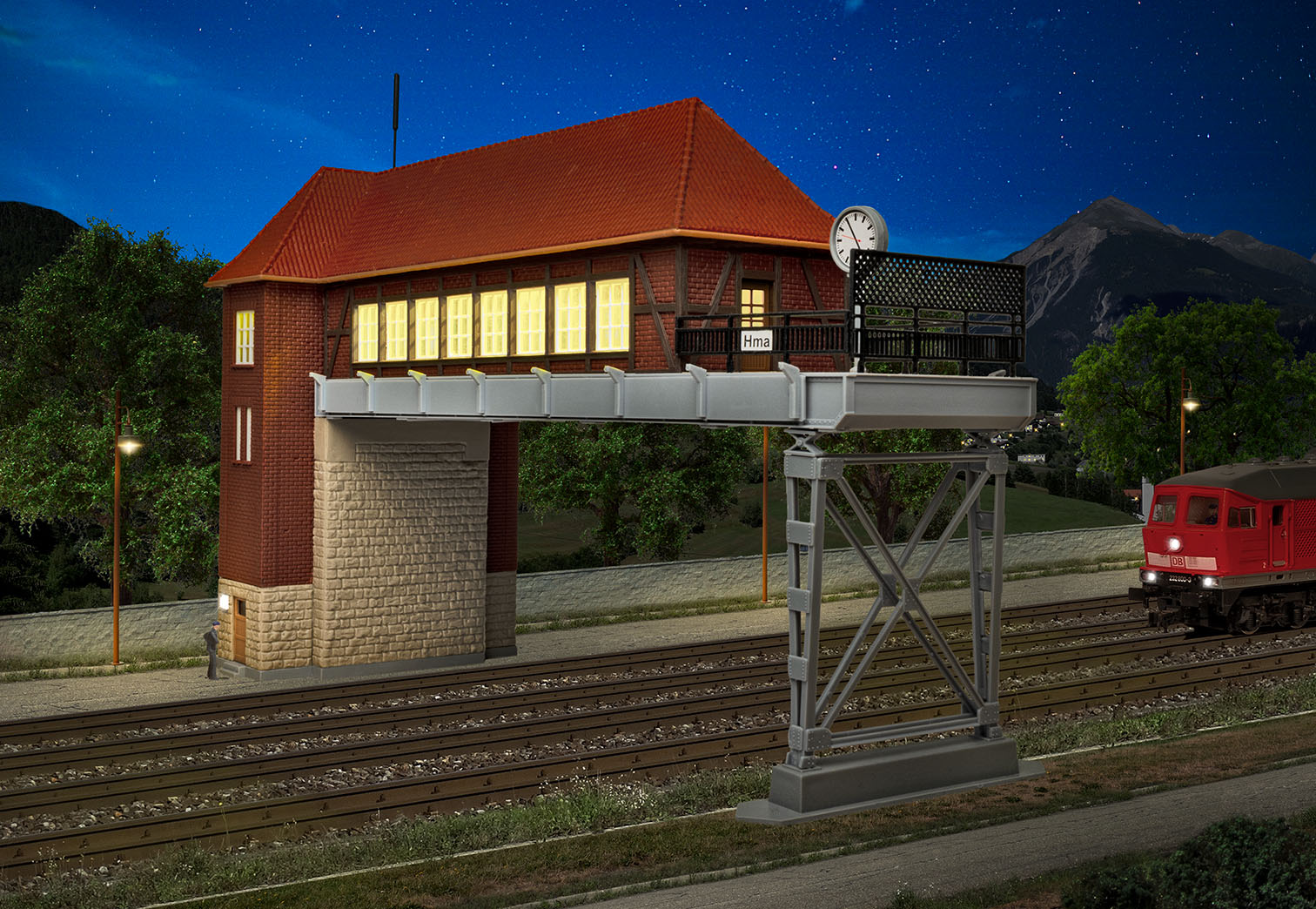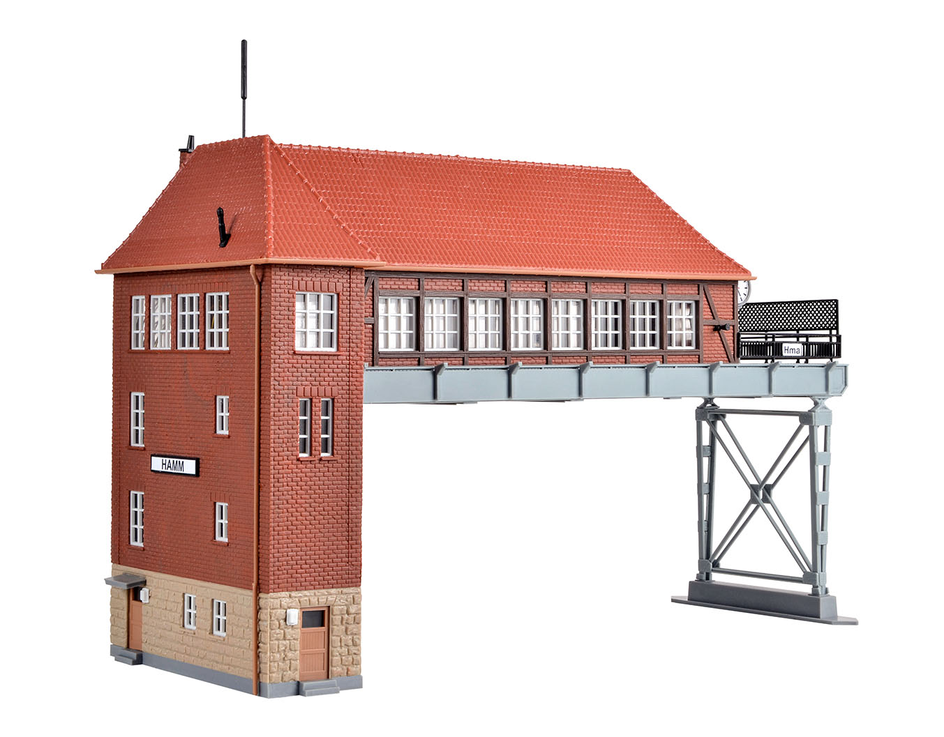 Bausatz. Das Stellwerk eignet sich besonders zur Montage der Viessmann Signalköpfe Art. 4751 - 4753 in Multiplex-Technologie und wird dadurch zum Blickfang eines jeden Gleisfeldes. Probieren Sie es aus! Überspannt vier Gleise. Durchfahrtshöhe: 8,6 cm, Durchfahrtsbreite: 21 cm. Maße: L 28 x B 11 x H 17,5 cm. Schwierigkeitsgrad: 2 (Fortgeschrittene).