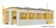 Bausatz. Zweiständige Wartungshalle für Gleisbaufahrzeuge. Mit einem 2. Bausatz kann das Gebäude auf vierständig verbreitert oder nach hinten verlängert werden. Zusammen mit der Werkskantine Art.
