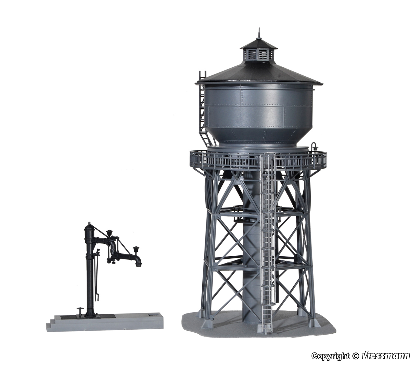 Bausatz. Maße: Wasserturm L 12,5 x B 12 x H 23 cm, Befüllkran L 8,8 x B 2 x H 8,3 cm. Schwierigkeitsgrad: 2 (Fortgeschrittene).
