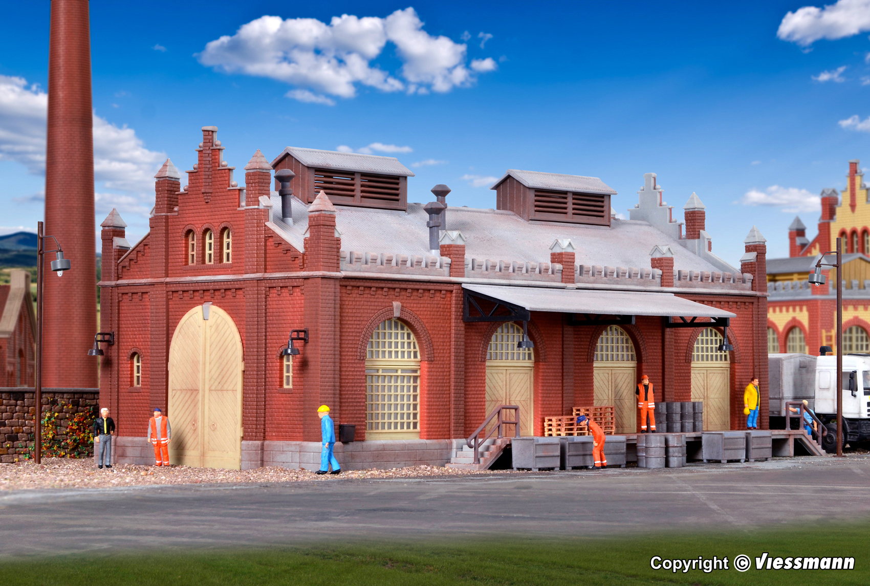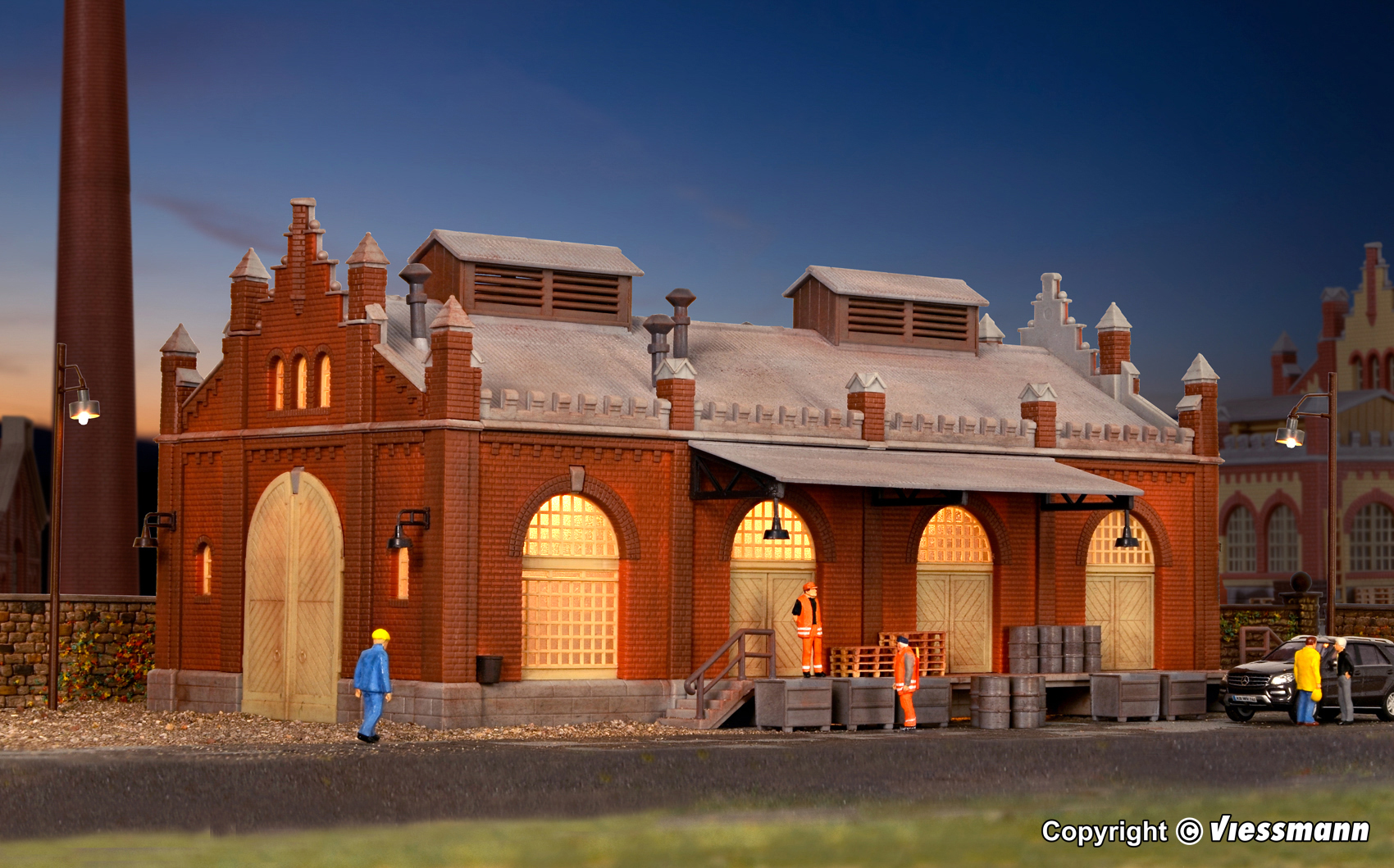 Bausatz. Diese Lagerhalle mit Rampe ist sehr vielseitig verwendbar, z.B. für einen Speditionsbetrieb. Maße: 26 x 14,5 x 11,8 cm
