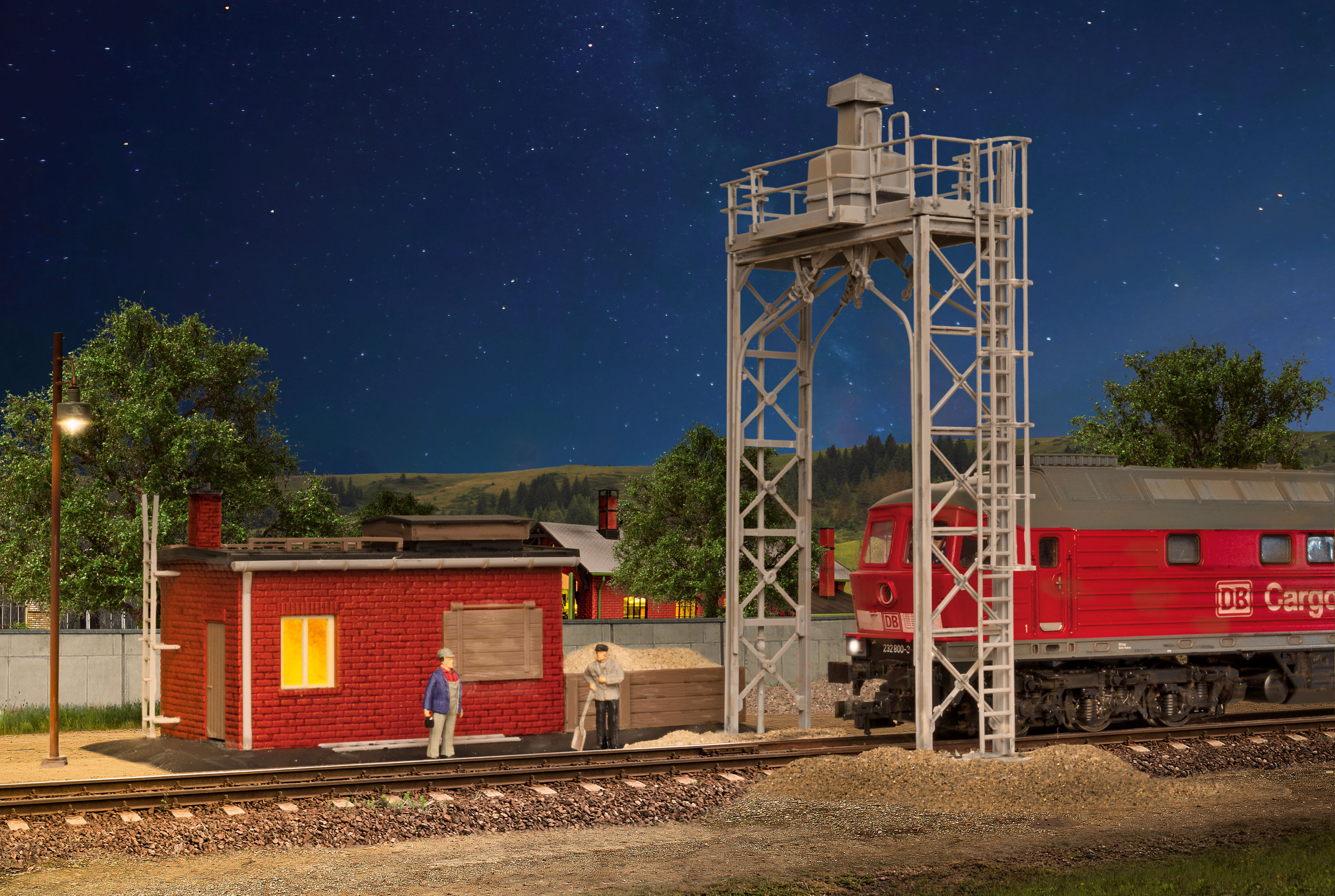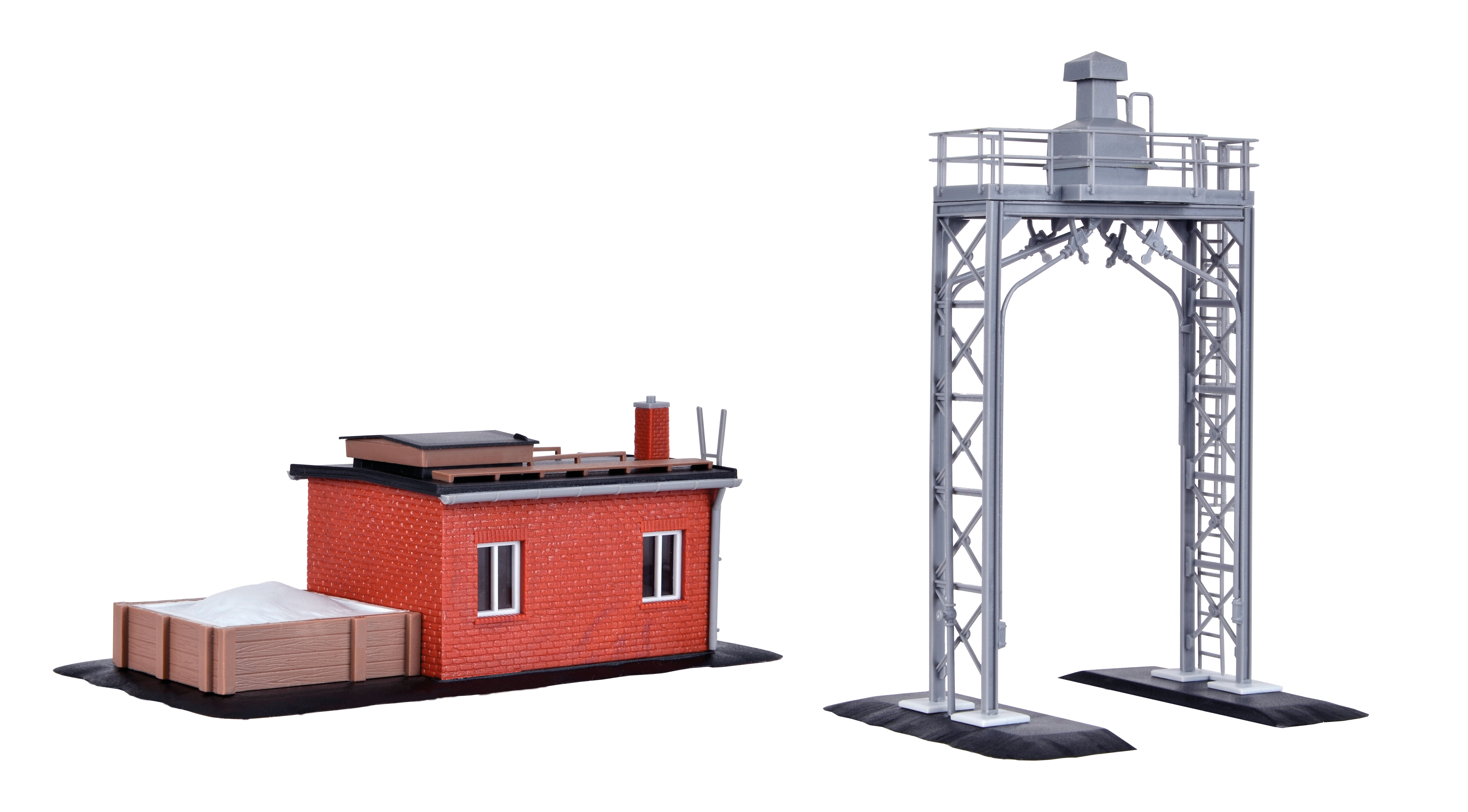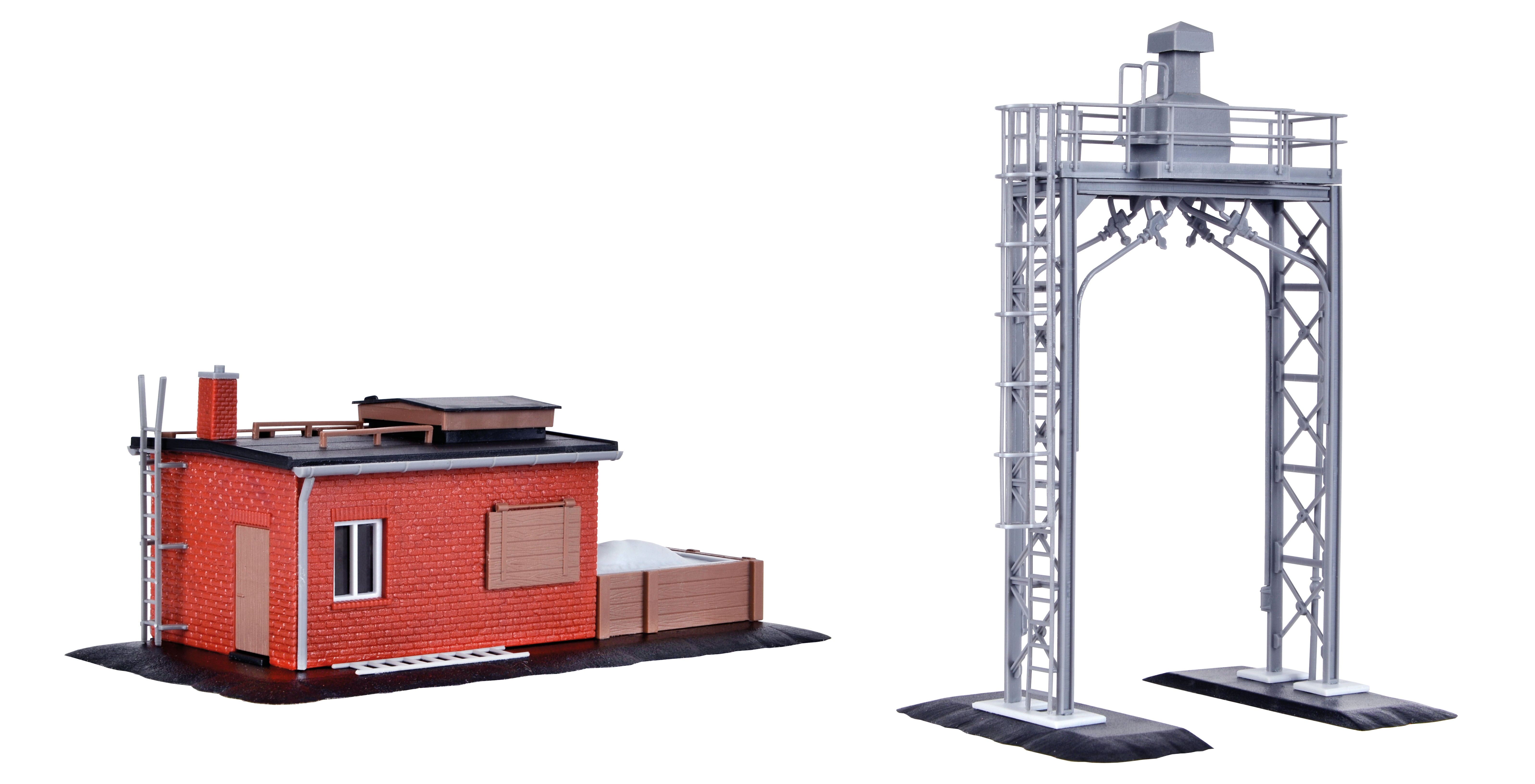 Bausatz. Für Dampf-, Diesel- und E-Loks. Durchfahrtshöhe: 9,5 cm. Durchfahrtsbreite: 2,8 cm. Maße: L 14 x B 7 x H 5 cm und L 7 x B 8,5 x H 12 cm. Schwierigkeitsgrad: 2 (Fortgeschrittene).