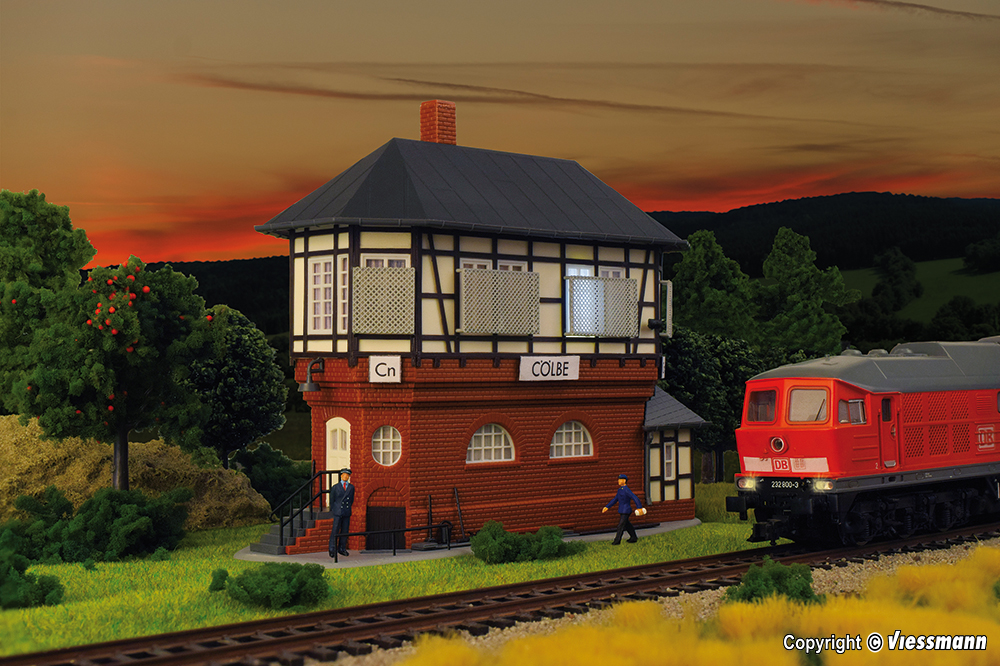 Bausatz. Das heute leider nicht mehr vorhandene Stellwerk in Cölbe bei Marburg war Vorbild für diesen Bausatz. Das Stellwerk wurde 1990 abgerissen. Maße: L 16,5 x B 7 x H 13 cm. Schwierigkeitsgrad: 2