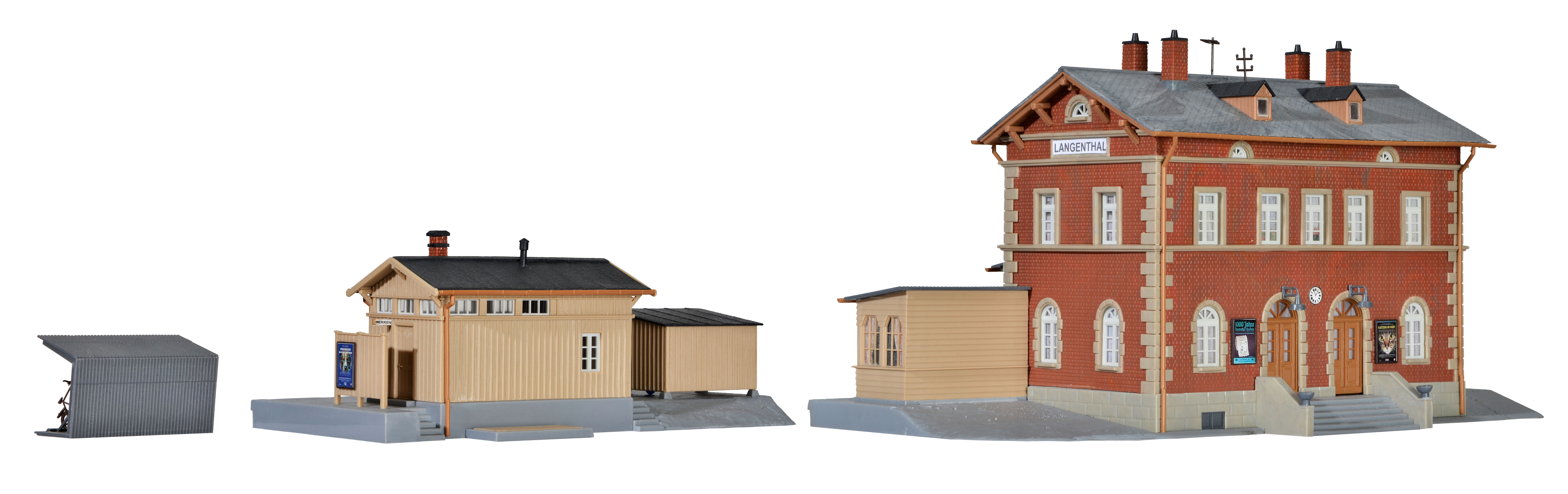 Bausatz. Das durch seine kompakten Abmessungen auch für kleine und mittlere Anlagen interessante Gebäude wurde dem großen Vorbild bis hin zu vielen Einzelheiten detailgetreu nachempfunden. Der Baustil dieses Bahnhofs kann jenen Bauten zugeordnet werden, die in ganz Deutschland und über die Grenzen hinaus vor und um die Wende zum 20. Jahrhundert entstanden sind. Maße Bahnhof: L 25 x B 15 x H 14 cm, Nebengebäude: L 18 x B 10 x H 7 cm. Schwierigkeitsgrad: 2 (Fortgeschrittene).
