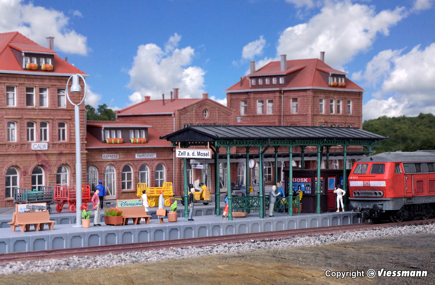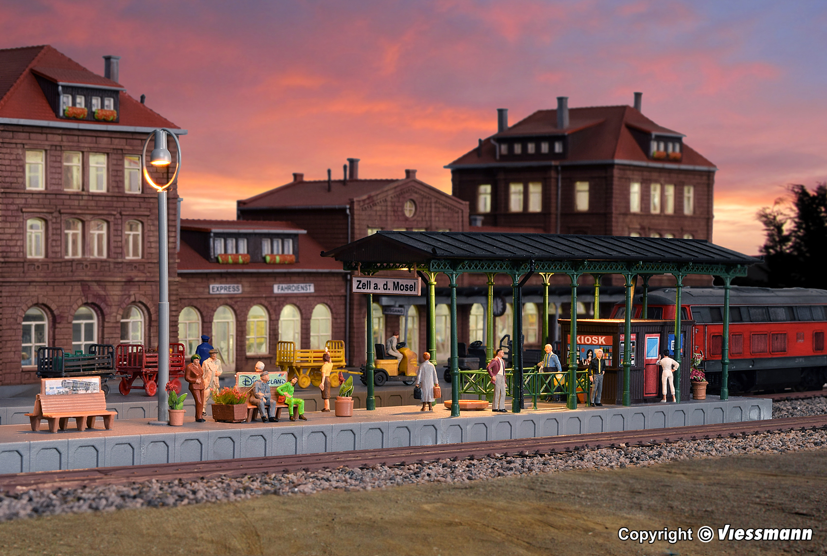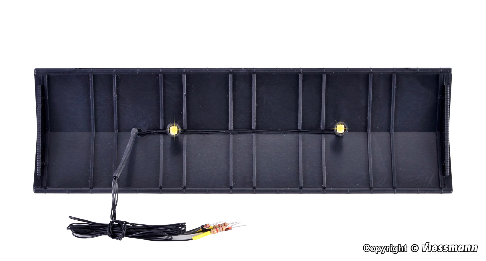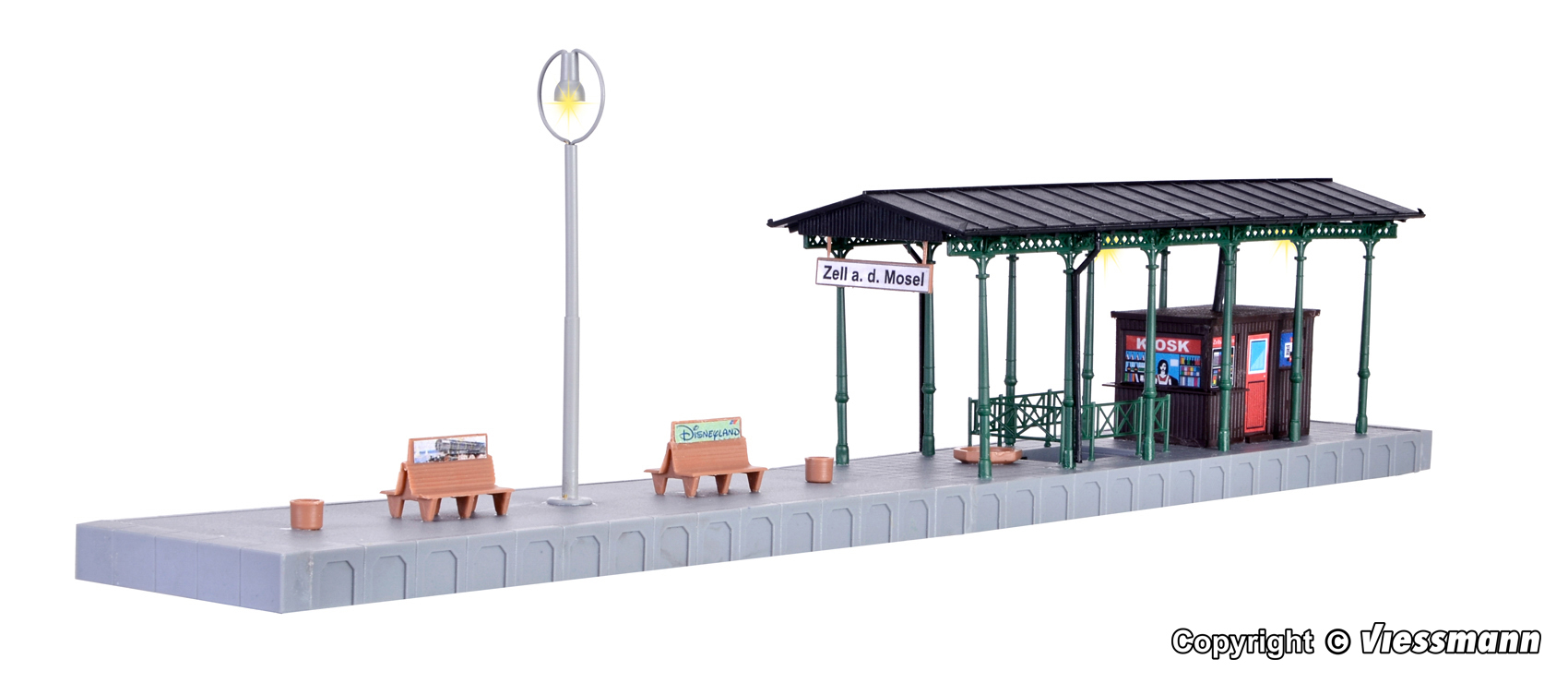 Funktionsbausatz. Dieser nostalgische Bahnsteig entspricht im Original dem nicht mehr vorhandenen Bahnsteig in Zell an der Mosel, ideal passend zur Epoche III. Der Bahnsteig ist ausgestattet mit 2 LEDs warmweiß und einer nostalgischen Viessmann Bahnsteigleuchte Art. 6035. Betriebsspannung: 10 - 16V AC ~ (mit und ohne 5215 Powermodul), 14-24V DC =, 13-24 V Digitalsignal mit Viessmann 5215 Powermodul. Maße: L 37 x B 5,4 x H 9,5 cm. Schwierigkeitsgrad: 2 (Fortgeschrittene).