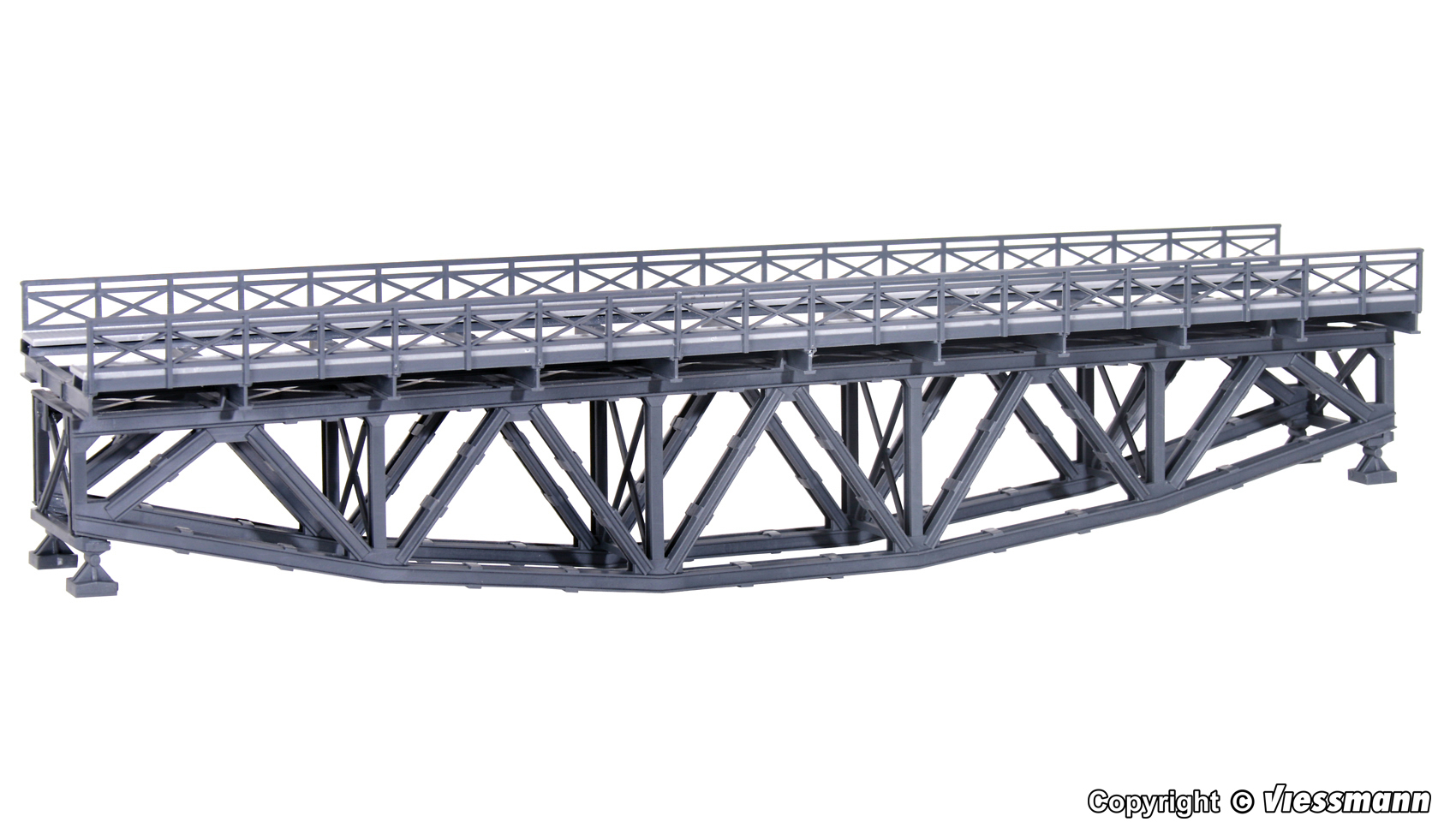 Bausatz. Der Name dieser besonders auffälligen Brücke leitet sich von der Tragwerkkonstruktion ab, die in diesem Fall der Form eines Fischbauches gleicht. Das Tragwerk, wesentlicher Teil der Konstruktion, liegt bei dieser Brückenform unterhalb des Gleises. Brückenköpfe nicht enthalten. In doppelter Ausführung ist ein zweigleisiger Aufbau möglich. Für alle gängigen Gleissysteme geeignet. Dazu passen die Brückenköpfe Art. 39752 und die Mittelpfeiler Art. 39753 und 39751. Fahrbahnhöhe: 4,5 cm. Maße: L 34 x B 6,6 x H 7,5 cm. Schwierigkeitsgrad: 2 (Fortgeschrittene).