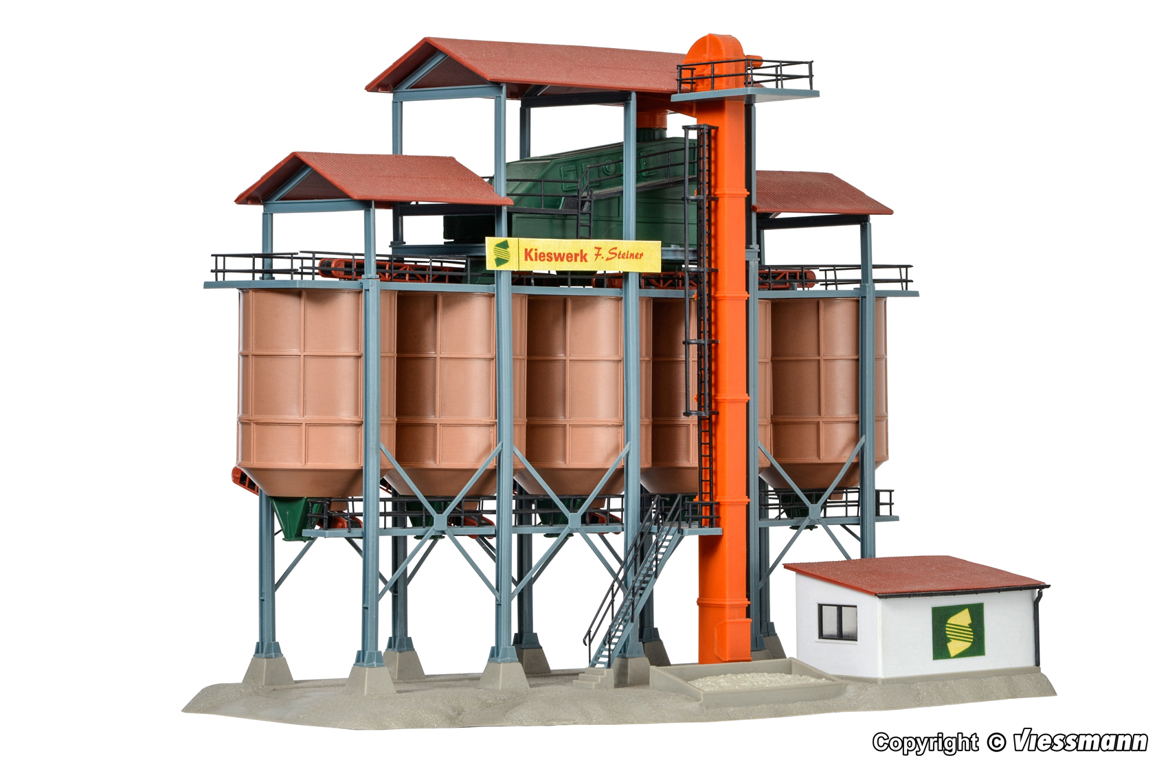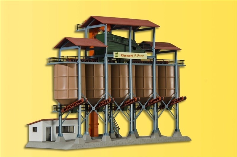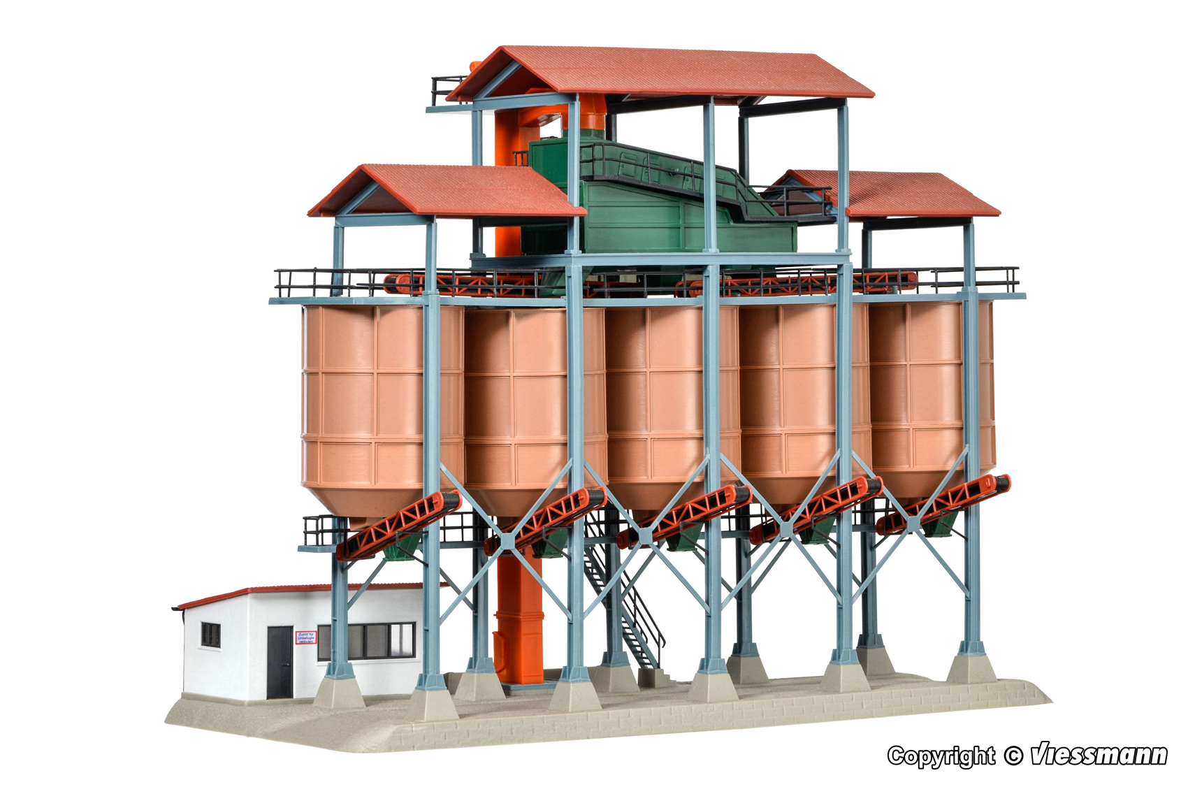 Bausatz. Mit 5 Silobehältern. Durchfahrtshöhe: 4,5 cm. Durchfahrtsbreite: 3 cm. Maße: L 27 x B 14,5 x H 22 cm. Schwierigkeitsgrad: 2 (Fortgeschrittene).