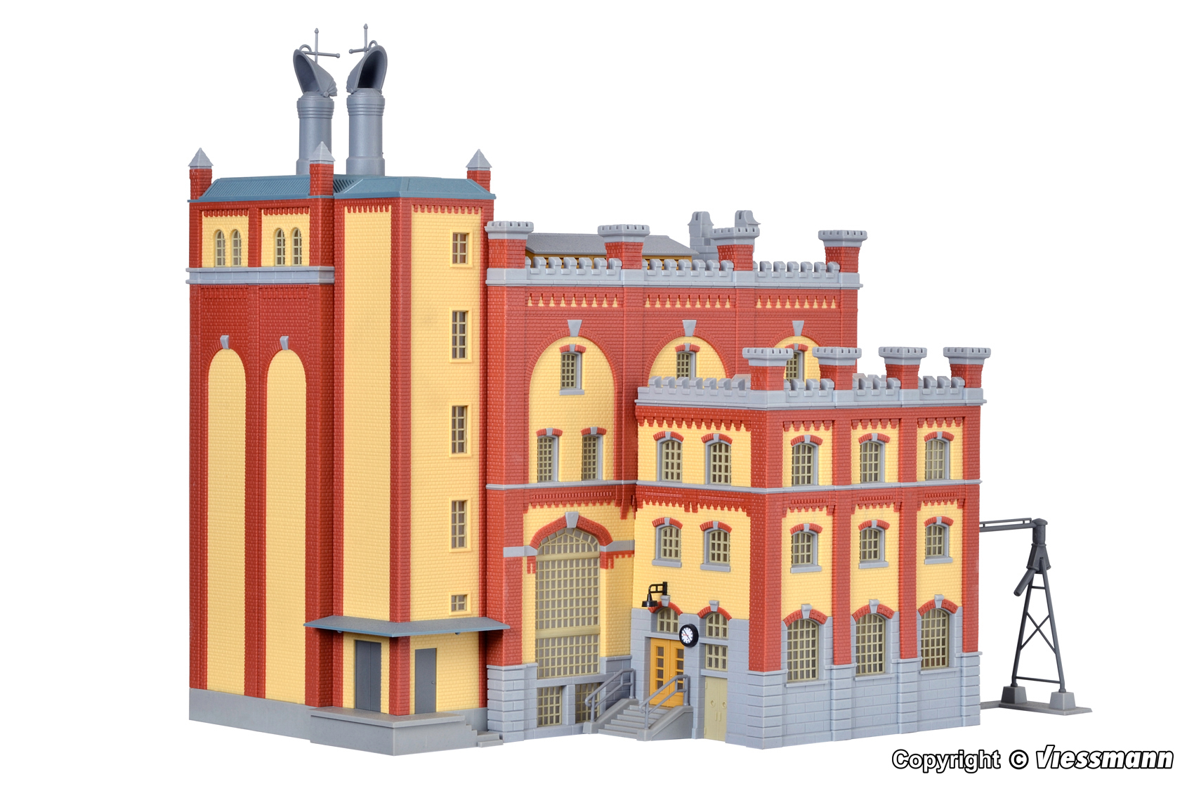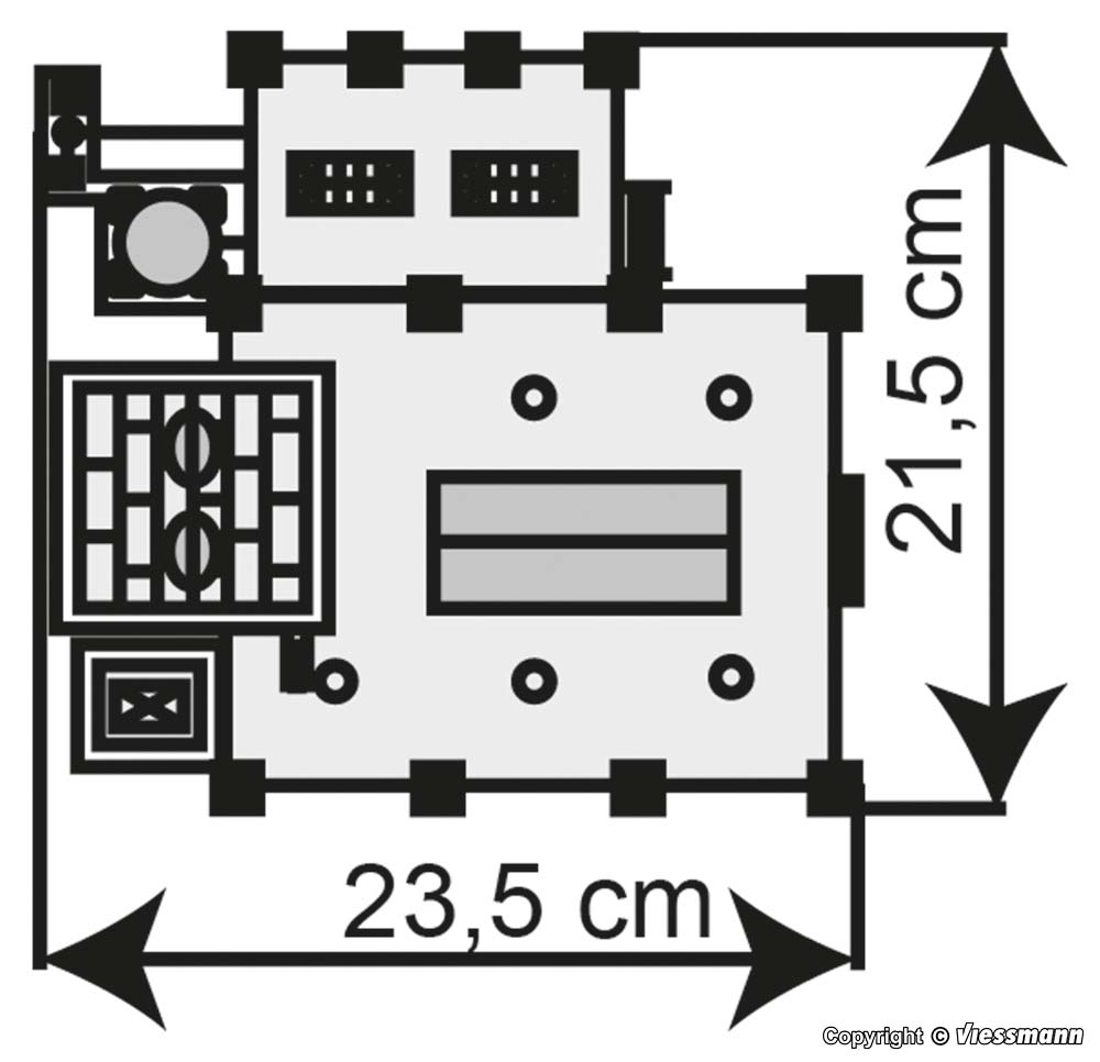Bausatz. Dieses kibri Modell entstand in Anlehnung an die Brauerei Feldschlösschen in Rheinfelden in der Schweiz. In dem ehemaligen Gifthüttli, das zur Brauerei umgebaut wurde, brauten Bierbrauer zum ersten Mal Ende des 19. Jahrhunderts Bier. Die Erweiterung der Anlage erfolgte kontinuierlich bis in die 60er Jahre des 20. Jahrhunderts. Die Baumaterialien, zweifarbiger Backstein und Naturstein, verleihen den Gebäuden einen gewissen Schloss-Charakter. Von jeher baute man Brauereien wie Türme, um oben die Rohstoffe zu lagern und sie nach und nach bei der Verarbeitung abwärts durch das Gebäude zu leiten, bis sie als Fertigprodukt im Keller landeten. Dazu passen das Erweiterungsgebäude Art. 39827, das Kühlhaus Art. 39826 und die Lagerhalle Art. 39217. Mit Stecksystem. Hergestellt im Zweifarben-Spritzgießverfahren. Maße: L 23,5 x B 21,5 x H 25,5 cm. Schwierigkeitsgrad: 2 (Fortgeschrittene).