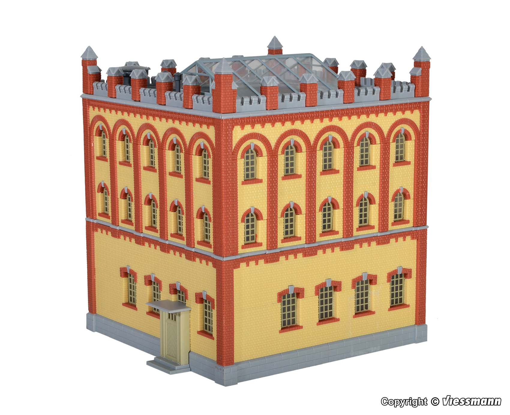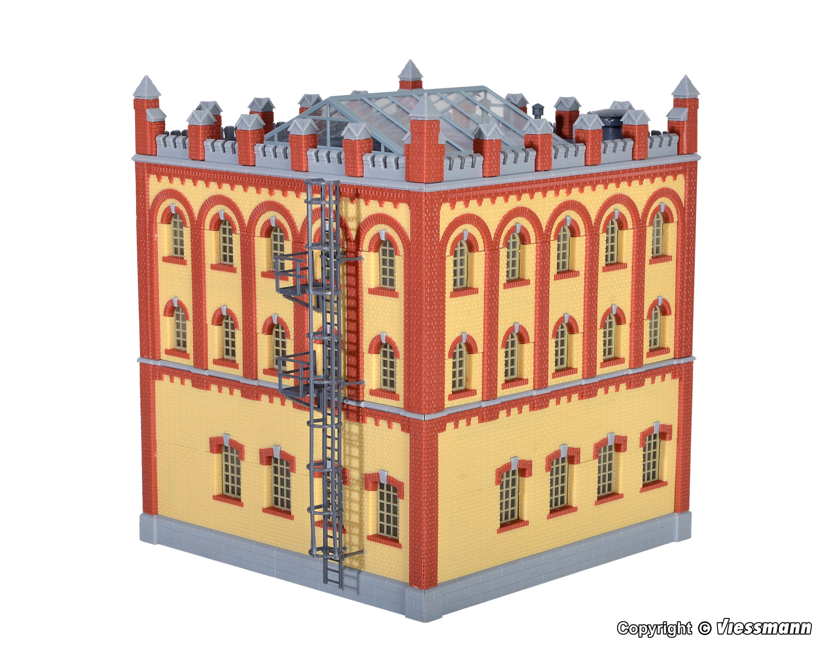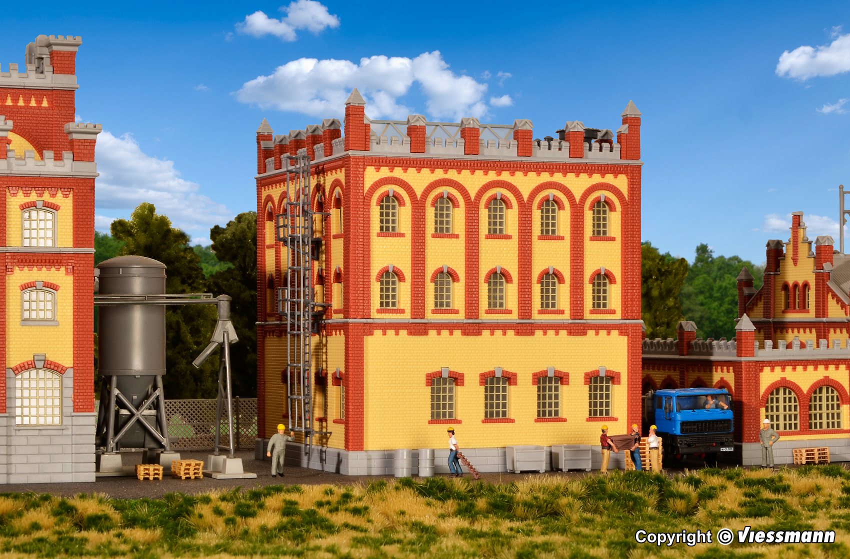 Bausatz. Dieses kibri Modell entstand in Anlehnung an die Brauerei Feldschlösschen in Rheinfelden in der Schweiz. In dem ehemaligen Gifthüttli, das zur Brauerei umgebaut wurde, brauten Bierbrauer zum ersten Mal Ende des 19. Jahrhunderts Bier. Die Erweiterung der Anlage erfolgte kontinuierlich bis in die 60er Jahre des 20. Jahrhunderts. Die Baumaterialien, zweifarbiger Backstein und Naturstein, verleihen den Gebäuden einen gewissen Schloss-Charakter. Dazu passen das Braugebäude Art. 39825, das Kühlhaus Art. 39826 und die Lagerhalle Art. 39217. Mit Stecksystem. Hergestellt im Zweifarben-Spritzgießverfahren. Maße: L 15,5 x B 13,5 x H 15,8 cm. Schwierigkeitsgrad: 2 (Fortgeschrittene).