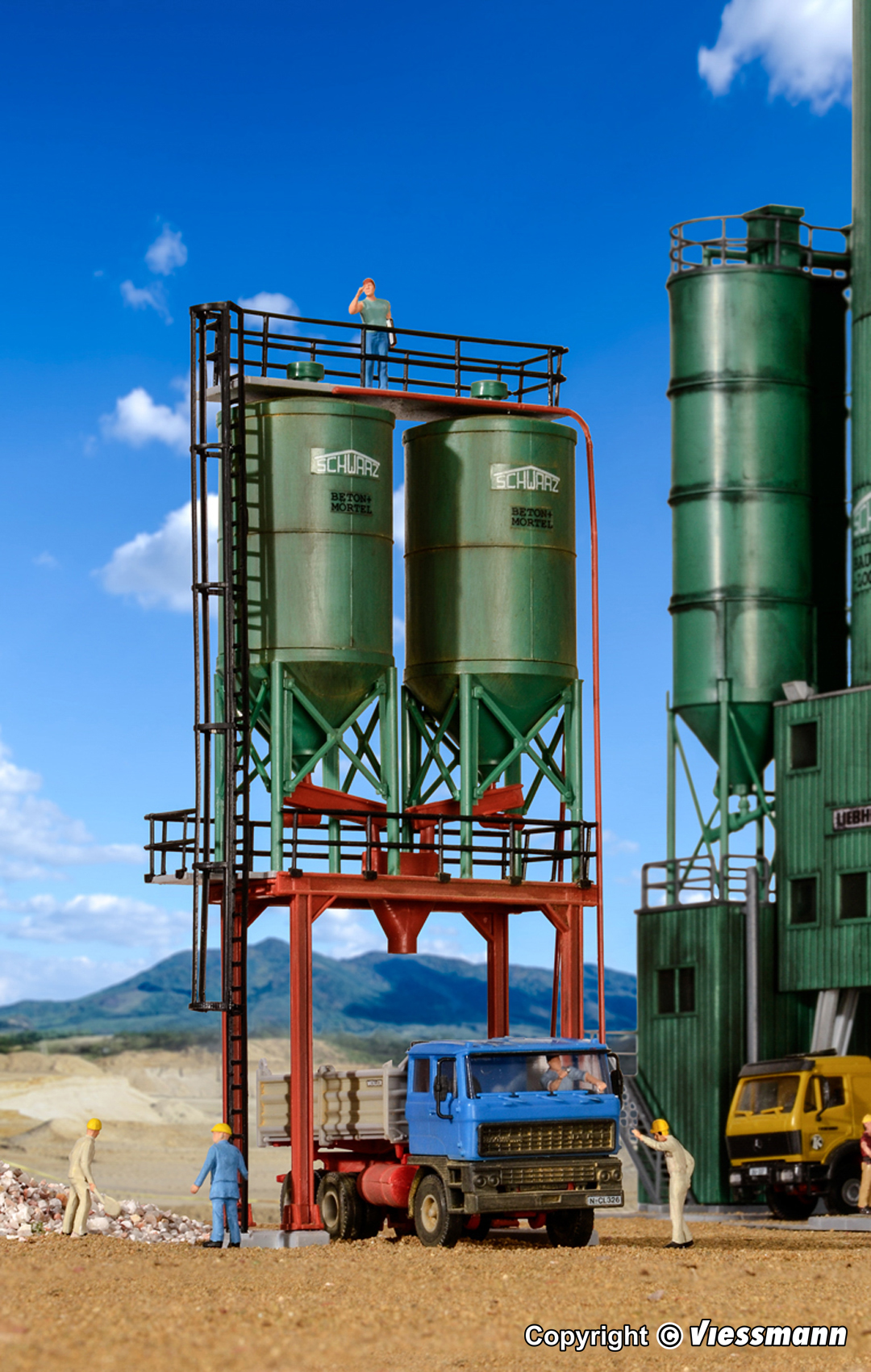 Bausatz. Die Firma SchwarzBau ist im kibri Sortiment stark vertreten. Mit dem Doppelsilo, dem Betonwerk Art. 39930, der Dieseltankstelle Art. 39932 und einer großen Auswahl an Baumaschinen in den typischen SchwarzBau Farben können der Betriebshof und Baustellen nach Belieben gestaltet werden. Durchfahrtshöhe: 5 cm. Durchfahrtsbreite: 4,5 cm. Maße: L 7,5 x B 3,5 x H 15,5 cm. Schwierigkeitsgrad: 2 (Fortgeschrittene).