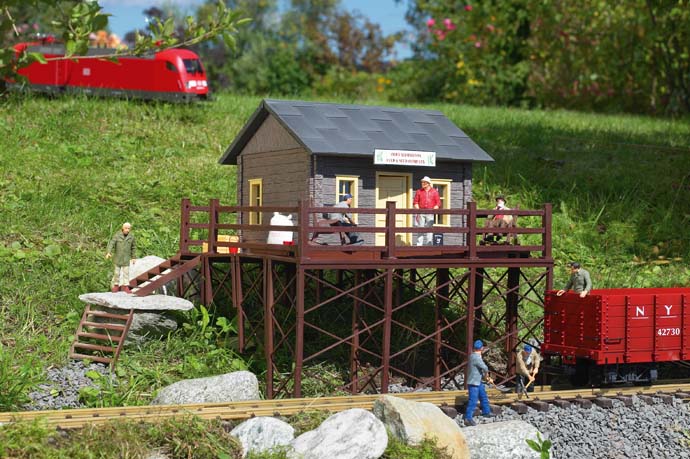An der Nebenbahn-Strecke liegt am Hang auf einer speziellen Plattform Knauer's kleines Gebäude. Hier können auch mal Ladegüter in abgestellte Waggons geladen werden. Herr Knauer ist schon alt geworden und liebt es mehr in seinem Schaukelstuhl zu sitzen. als sich um das Geschäft zu kümmern.