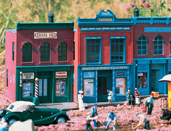 Die typischen Schiebefenster des wetterfesten und teilweise gealterten Gebäudes sowie die Türen sind frei beweglich. Die Friseurzeichen, Pfosten und Aushängeschild sind enthalten.