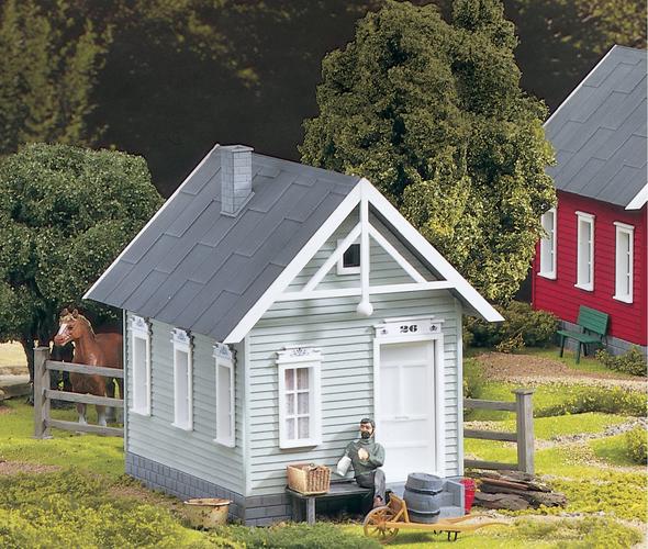 In dem kleinen Holzhaus mit seiner dezenten Farbgebung wohnt die Familie King, die besonders stolz auf die filigrane Giebelverzierung an der Vorderseite ihres Hauses ist. Die Türen des Häuschen sind beweglich. Gingerbread-Serie Mit mehreren dieser kleinen Häuschen im Holzhaus-Stil läßt sich besonders gut die Atmosphäre von Kleinstädten im amerikanischen mittleren Westen nachgestalten.