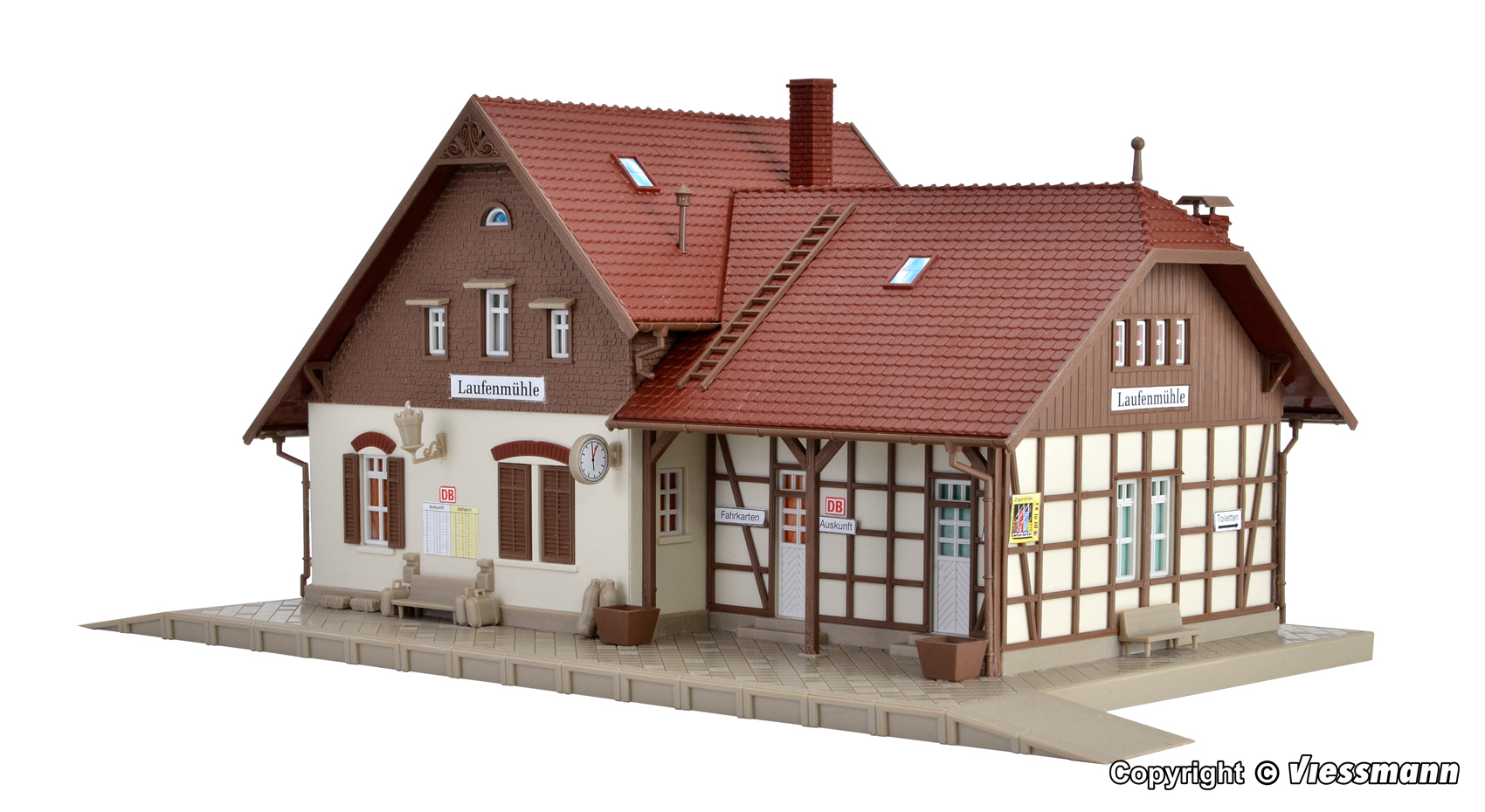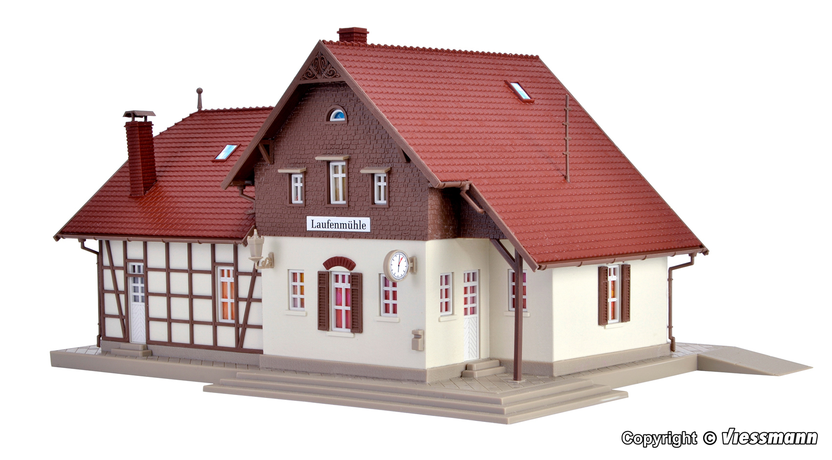Der Bahnhof Laufenmühle ist ein markanter Haltepunkt der Wieslauftal-Bahn aus der guten alten Zeit. Heute wird das Gebäude vorwiegend als Ausflugslokal genutzt. Romantik pur im Schwäbischen Wald nahe der Stadt Welzheim. Maße: L 27,2 x B 16,3 x H 12 cm.