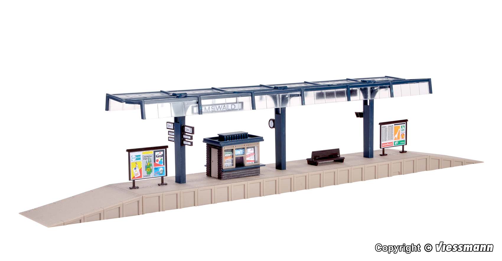 Dieser Bahnsteig kann mit folgenden Zusatzelementen beleuchtet werden: Art. 46555 Lichtstab. Ein Tipp: Kleben Sie die Dächer der Bahnsteige nicht fest, so sind diese auch nachträglich noch damit auszurüsten. Maße: L 37,2 x B 4,8 x H 7,2 cm. Dachbreite: 5,2 cm.