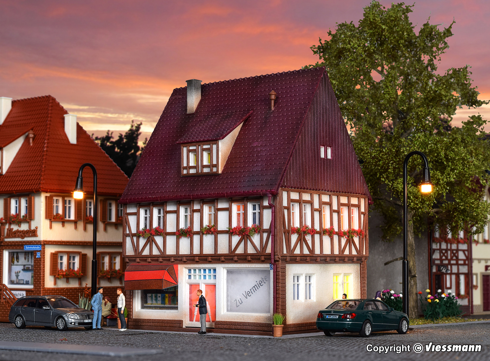 Mit den Bausätzen der Vollmer Bahnhofstraße 9 ? 19 können Sie einen kompletten Straßenzug mit Wohn-, Geschäfts- und Fachwerkhäusern gestalten. Bereits mit 4 Bausätzen schaffen Sie sich eine preiswerte und abwechslungsreiche Häuserfront. Maße: L 10 x B 9 x H 13 cm.