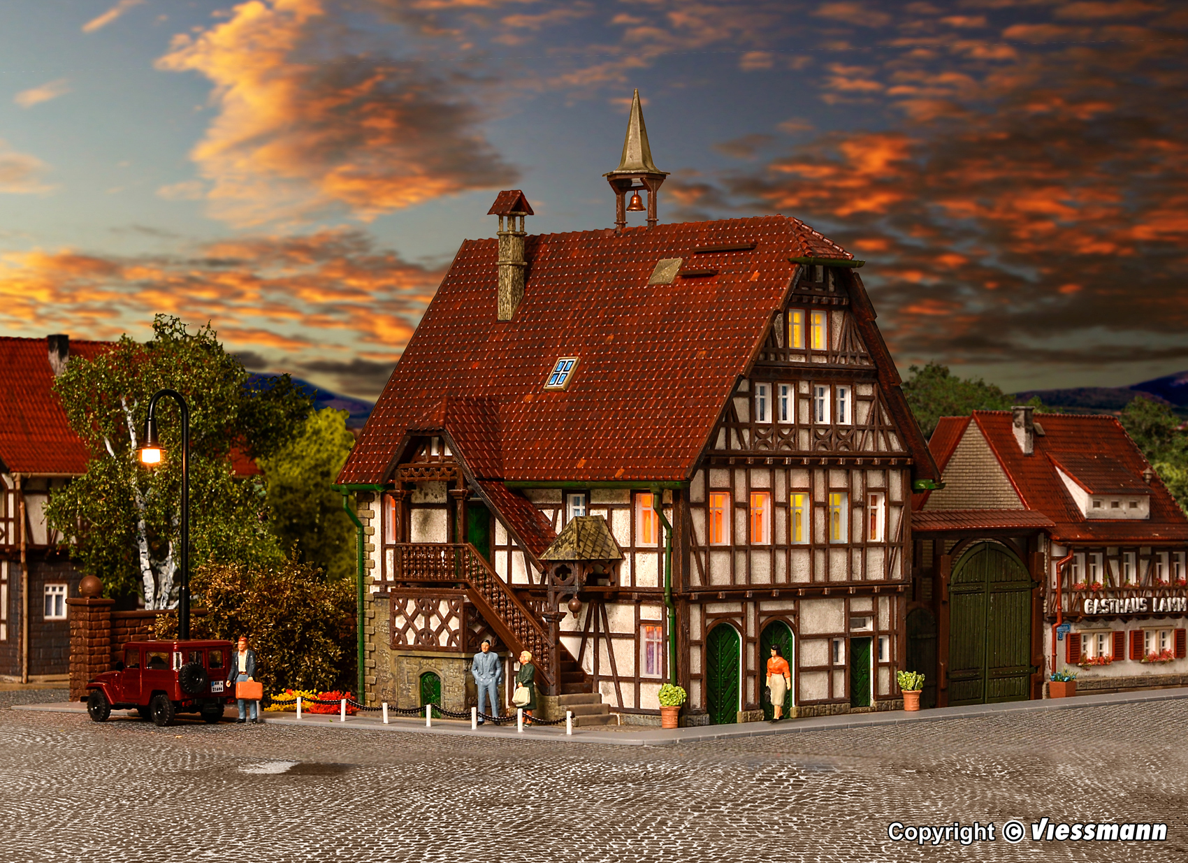Das alte Rathaus von Kochendorf wurde 1597 in Fachwerkbauweise erbaut. Sein heutiges Aussehen erhielt das Gebäude durch eine Renovierung im Jahr 1890. Das Gebäude war im Erdgeschoss ursprünglich eine halb offene Markthalle, die heutigen Lagerräume im Erdgeschoss wurden erst später geschaffen. Maße: L 13,5 x B 12 x H 16,5 cm.