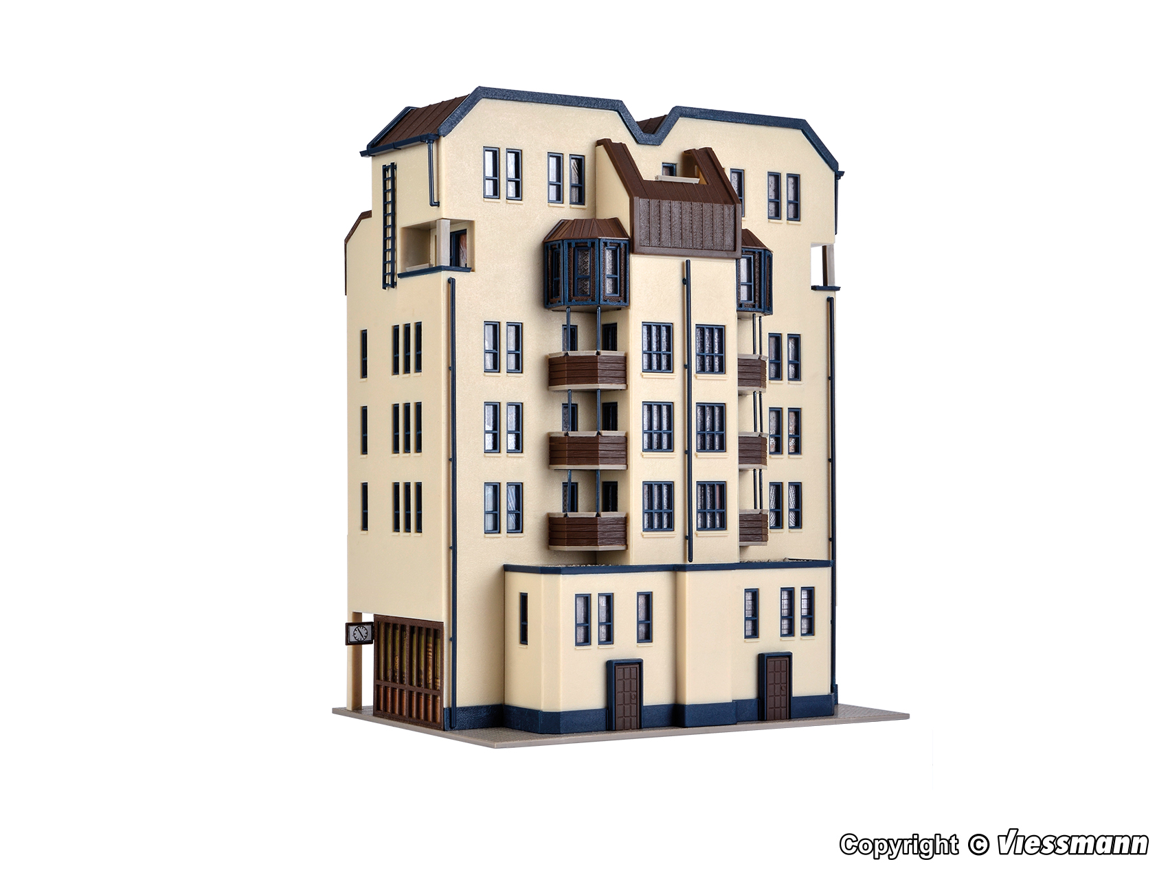 Dieses moderne, mehrgeschossige Stadthaus verfügt über Wohnräume in den oberen Etagen und Geschäftsräume im Erdgeschoss. Maße: L 16 x B 11,8 x H 20 cm.
