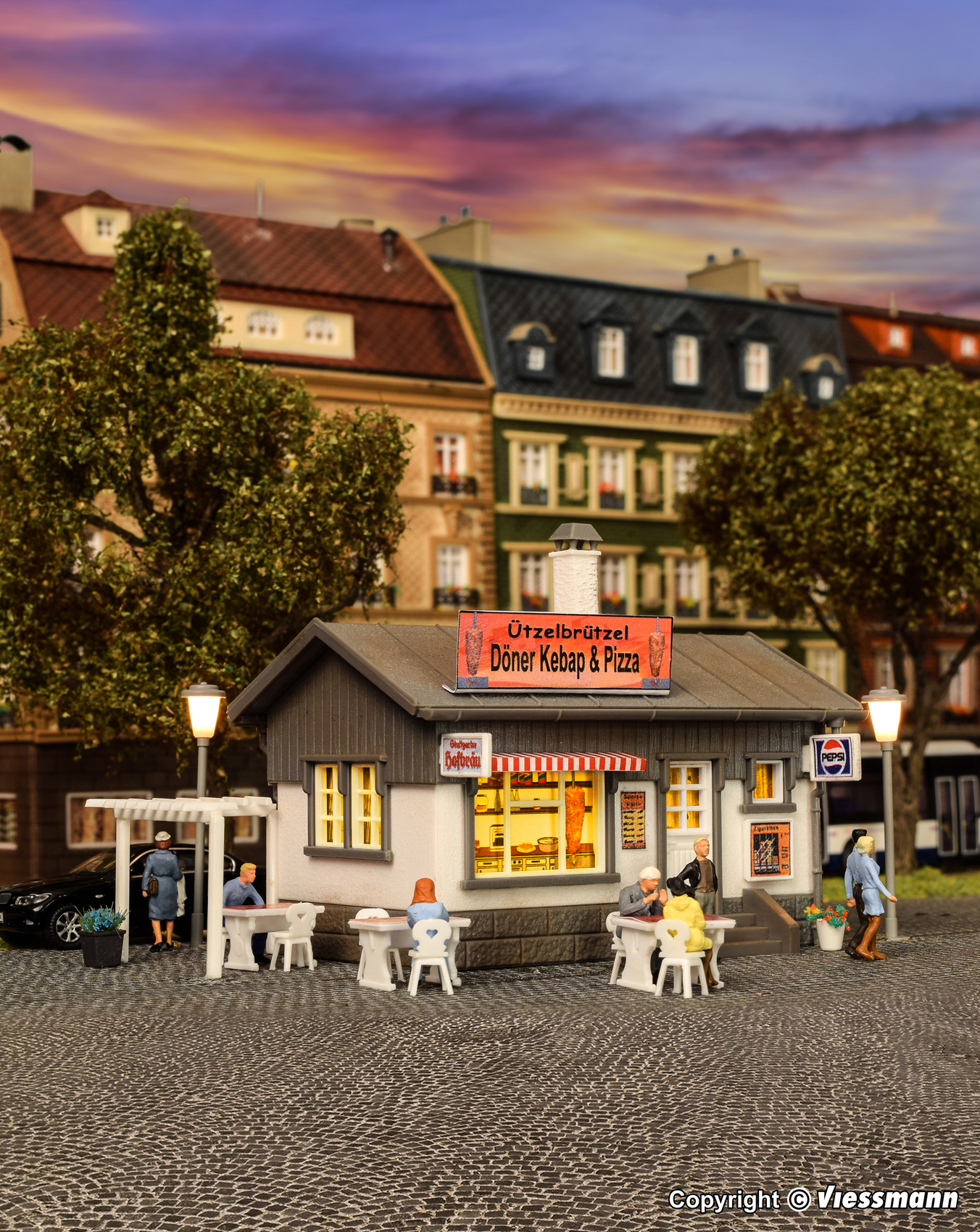 Mit Tischen und Stühlen zur Gestaltung des Außenbereichs. Maße: L 9 x B 8,5 x H 7 cm.