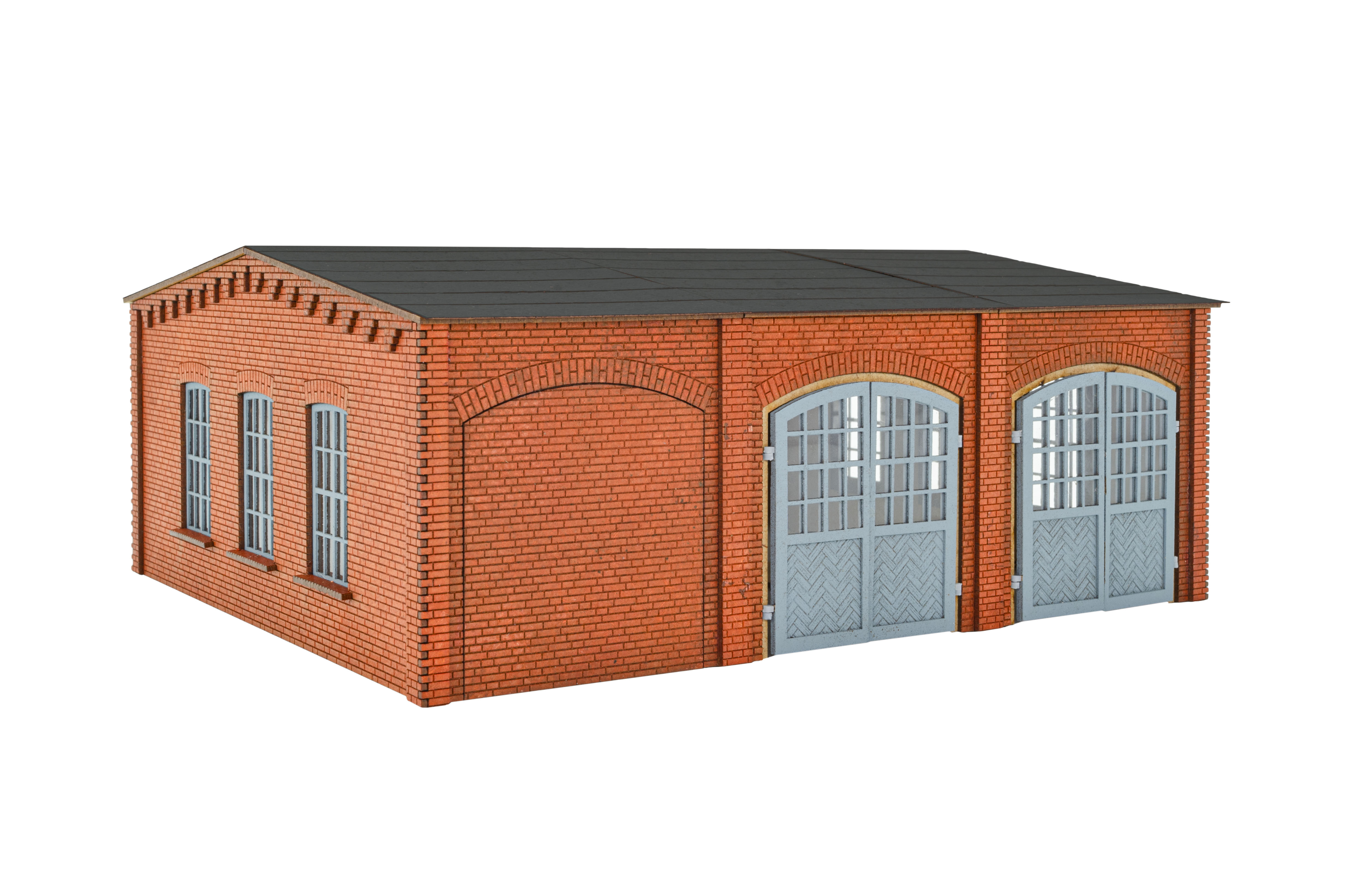 Zeitloses Werkstattgebäude aus Polyplate Verbundwerkstoff. Maße: L 17 x B 14,8 x H 7,1 cm.