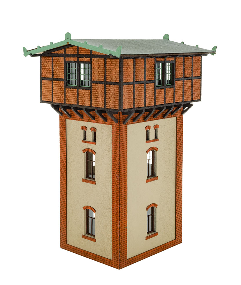 H0 Wasserturm - Polyplate Bausatz - Wasserturm aus Polyplate Verbundwerkstoff. L 6,5 - 9,6 x B 8,7 x H 14,6 cm.