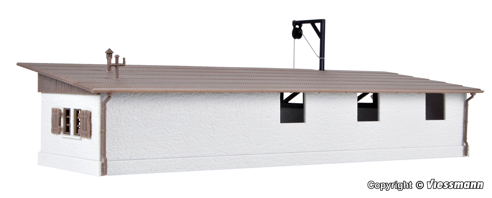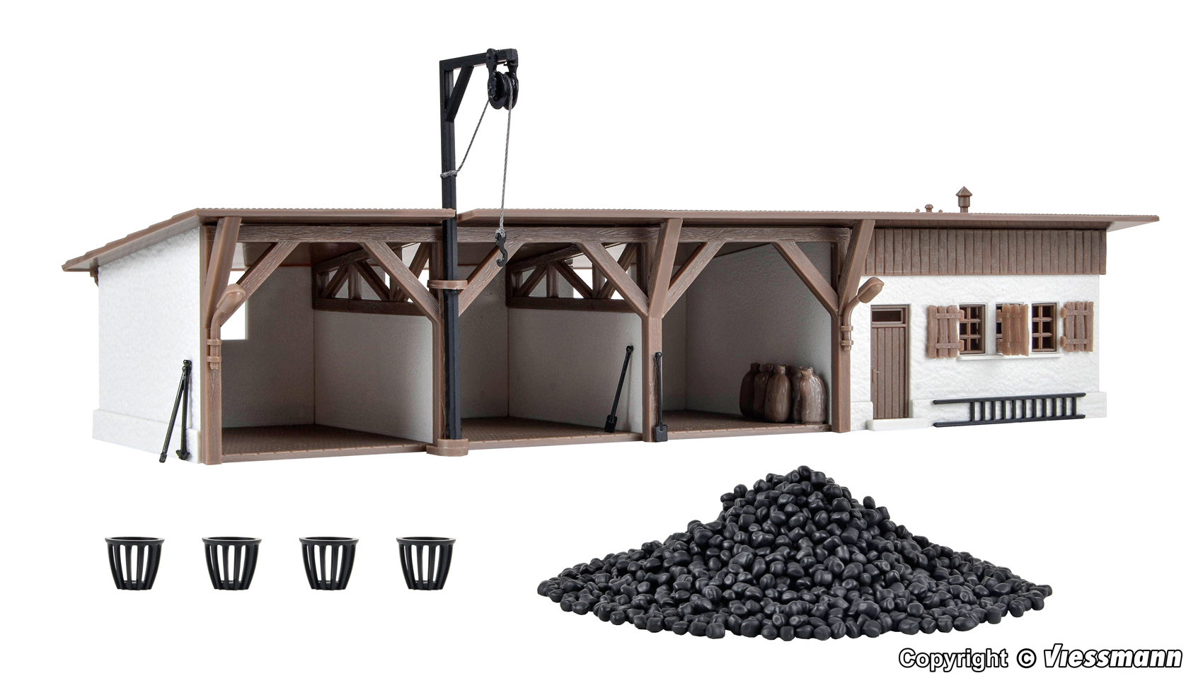 Dieser Schuppen eignet sich zur Lagerung von Schüttgütern, z. B. Kohle. Maße: L 23 x B 10 x H 8 cm.