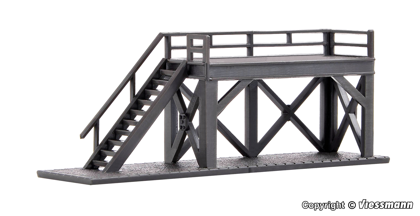Hier dreht sich alles um die Dampflok. An dieser Arbeitsbühne wird die Lok auf ihre Funktionsfähigkeit überprüft. Maße: L 6,5 x B 1,6 x H 2,4 cm.