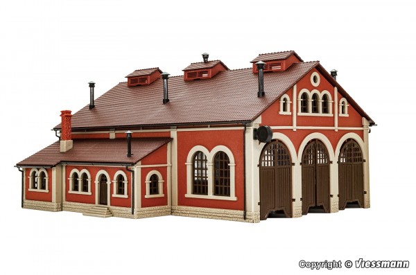 N Lokschuppen, dreiständig - Maße: L 18,5 x B 15 x H 9,5 cm.