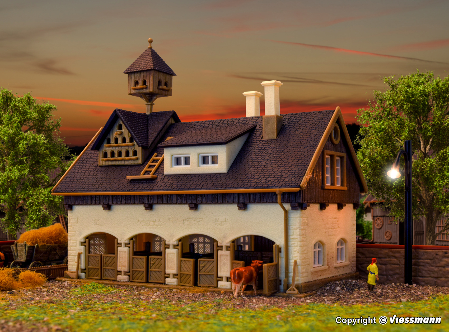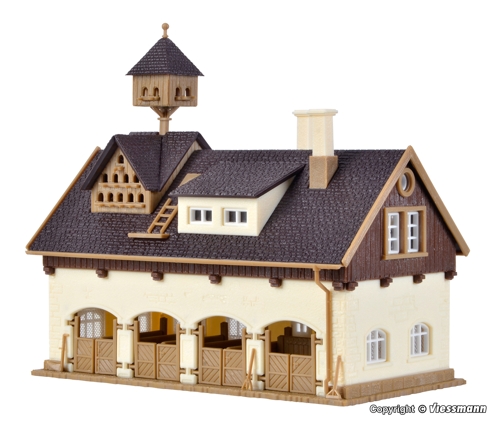 Das Dach des Stalls ist abnehmbar. So kann das Innere nach Belieben gestaltet und verändert werden. Maße: L 10,5 x B 6 x H 9,5 cm.