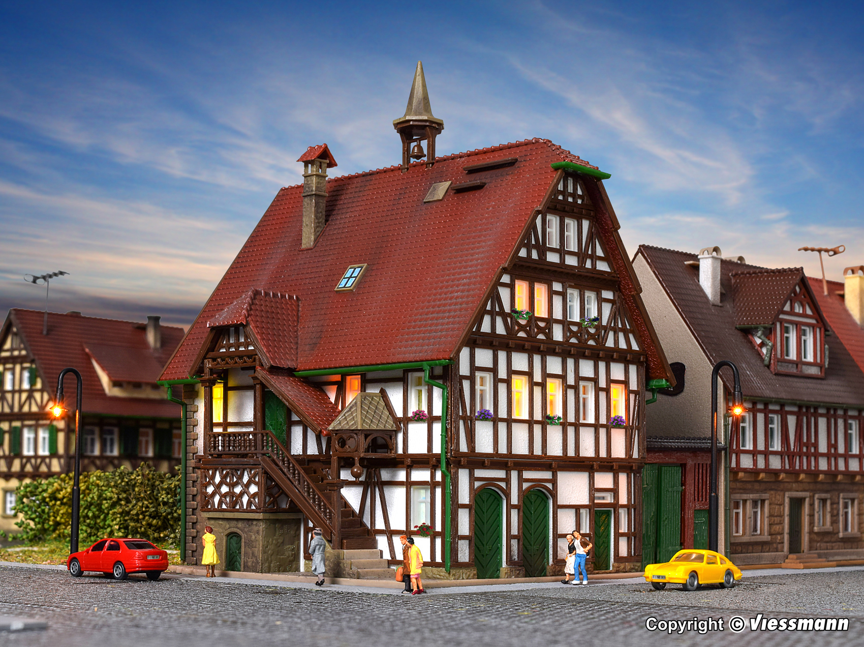 Das alte Rathaus von Kochendorf wurde 1597 in Fachwerkbauweise erbaut. Seine heutiges Aussehen erhielt das Gebäude durch eine Renovierung im Jahr 1890. Das Gebäude war im Erdgeschoss ursprünglich eine halb offene Markthalle, die heutigen Lagerräume im Erdgeschoss wurden erst später geschaffen. Maße: L 10,5 x B 10 x H 12,8 cm.