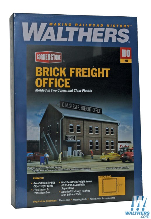 Walthers Freight Office (#933-2953) and Freight House (#933-2954) kits are based on structures that stood on Fowler Street, just south of Milwaukee's hometown depot. Their classic American design is similar to buildings in many other cities making both models ideal for use in any city terminal or as part of a large industry. Authentic Milwaukee Road signs are included in the Freight Office kit. Special end walls in the Freight House allow modelers to easily combine kits to create a larger facility. These easy-to-build kits have detailed plastic parts and come with illustrated instructions. Individually or combined, they're a great accessory for Walthers Hiawatha.