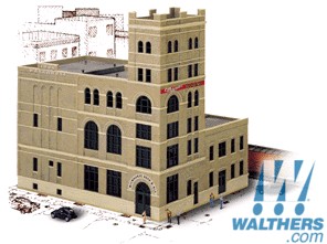 Skoal! Prost! Salut! No matter how you say it, this handsome brewery building will be the toast of your railroad. Many started as small, local suppliers, eventually growing into huge operations, thanks to the railroads. In every era, these facilities require an amazing variety of freight cars. Box cars and hoppers bring in grains and malt, as well as empty barrels, bottles, bottle caps or cans. Hoppers haul in coal and one or two may depart with loads of broken glass. Gondolas haul scrap aluminum. Tank cars arrive with natural gas, or corn syrup, while others carry beer in bulk. Insulated box cars and reefers bring in hops, then haul the finished products to market.