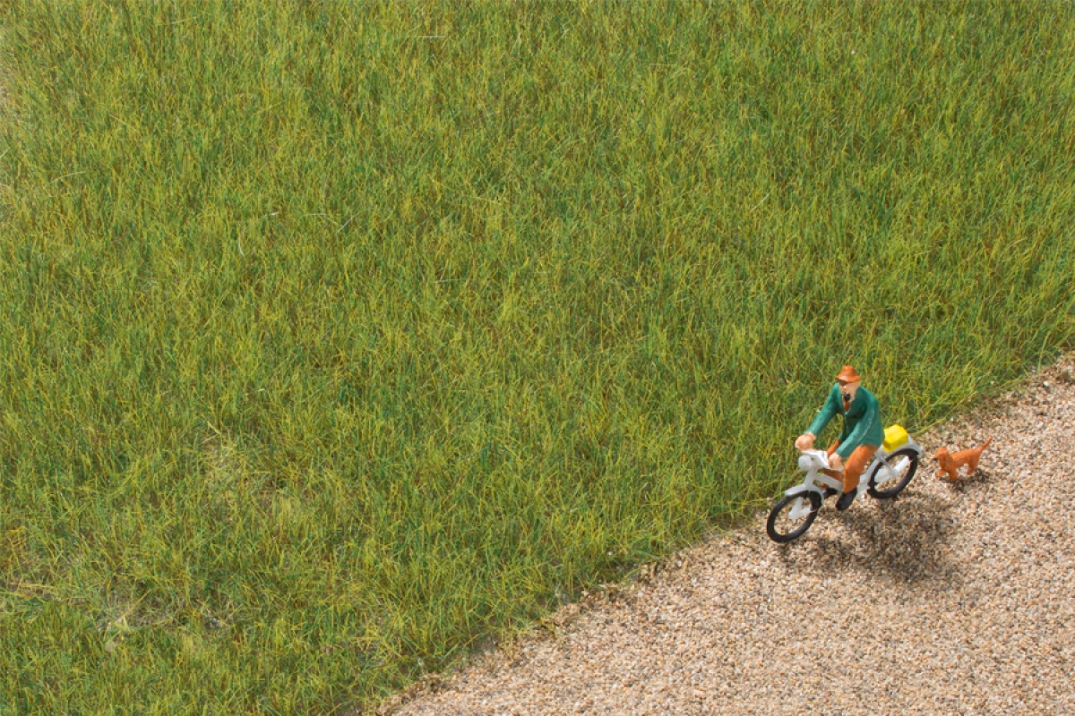Neben der individuellen Geländegestaltung kaschiert man mit Grasfasern auch die Übergänge bei unseren Geländematten.