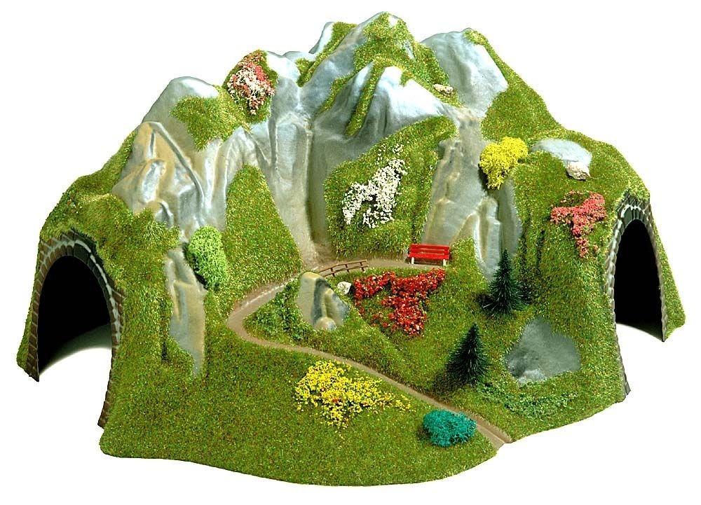 Mit hochaufragenden Felsformationen und besonders schön detaillierter Ausgestaltung. Für gebogene Strecken.