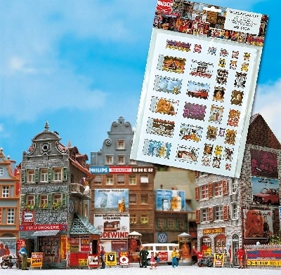 Über 60 Plakate in verschiedenen Ausführungen und Größen. Vom »Playboy« bis zu Zigarettenwerbung, Zirkusplakate, Putzmittel, Getränke, Veranstaltungen, Schaufensterplakate usw. Außerdem Plakattafeln und Plakatböcke, sowie Litfass-Säulen zum Ankleben der Motive.