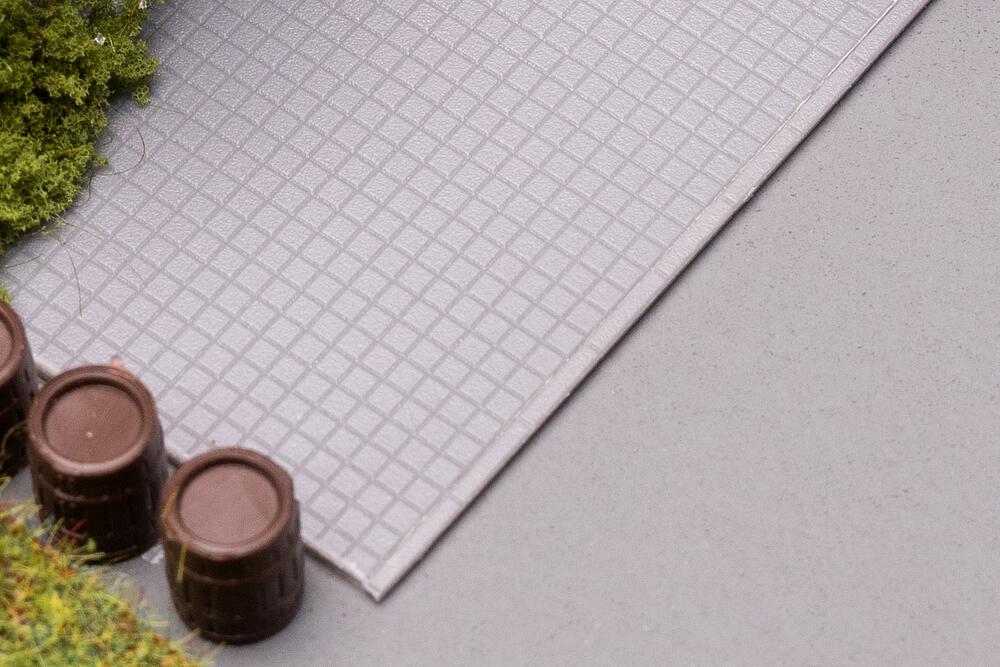 Set aus Gehwegplatten und passenden Randsteinen zur realistischen und detailreichen Gestaltung von Straßenrändern im Modell.