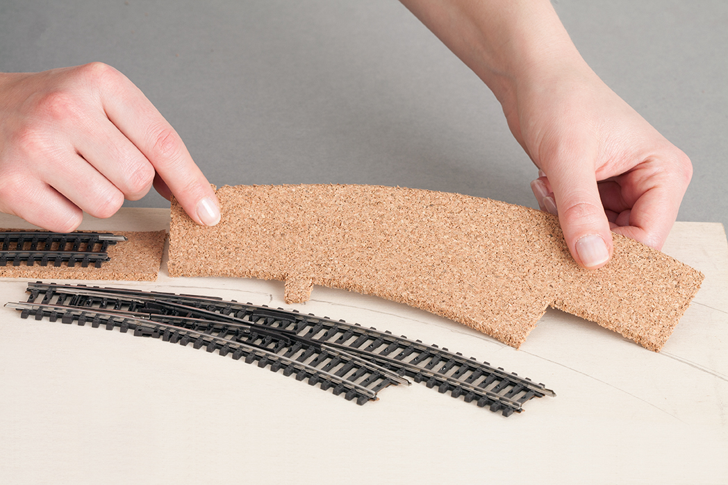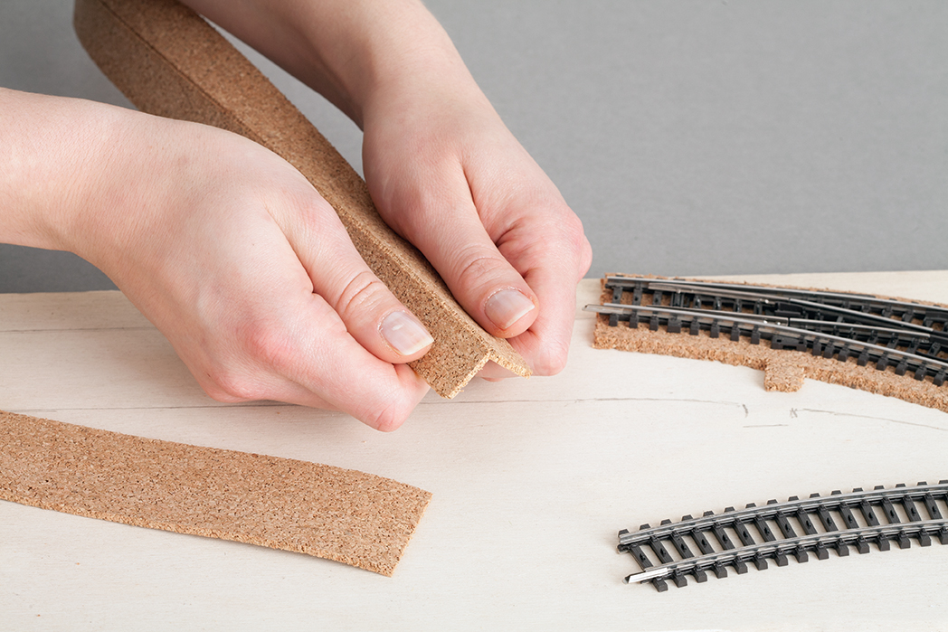 Kork-Gleisbettung, 3 mm hoch. 6 Stück, je 4,4 x 50 cm (Gesamtlänge 3 m).