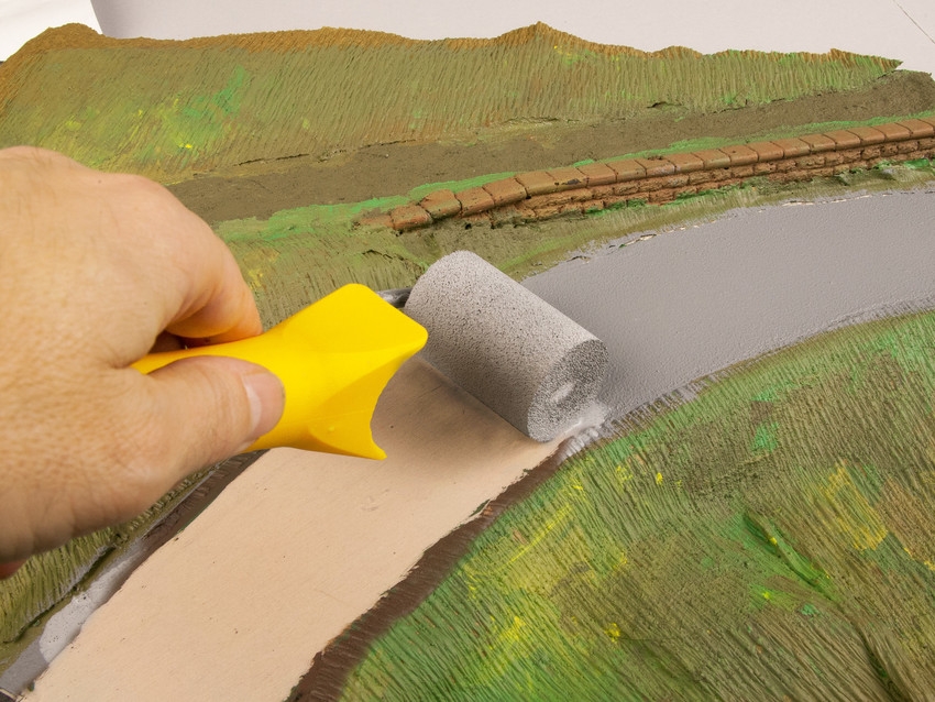 Das NOCH Straßenbau-System bildet die Grundlage. Es besteht aus der speziellen Straßenbau-Strukturfarbe und dem Straßenbau-Farbroller. Die Straßenmarkierungen werden schließlich mit dem Start-Set Straßenmarkierung aufgebracht.