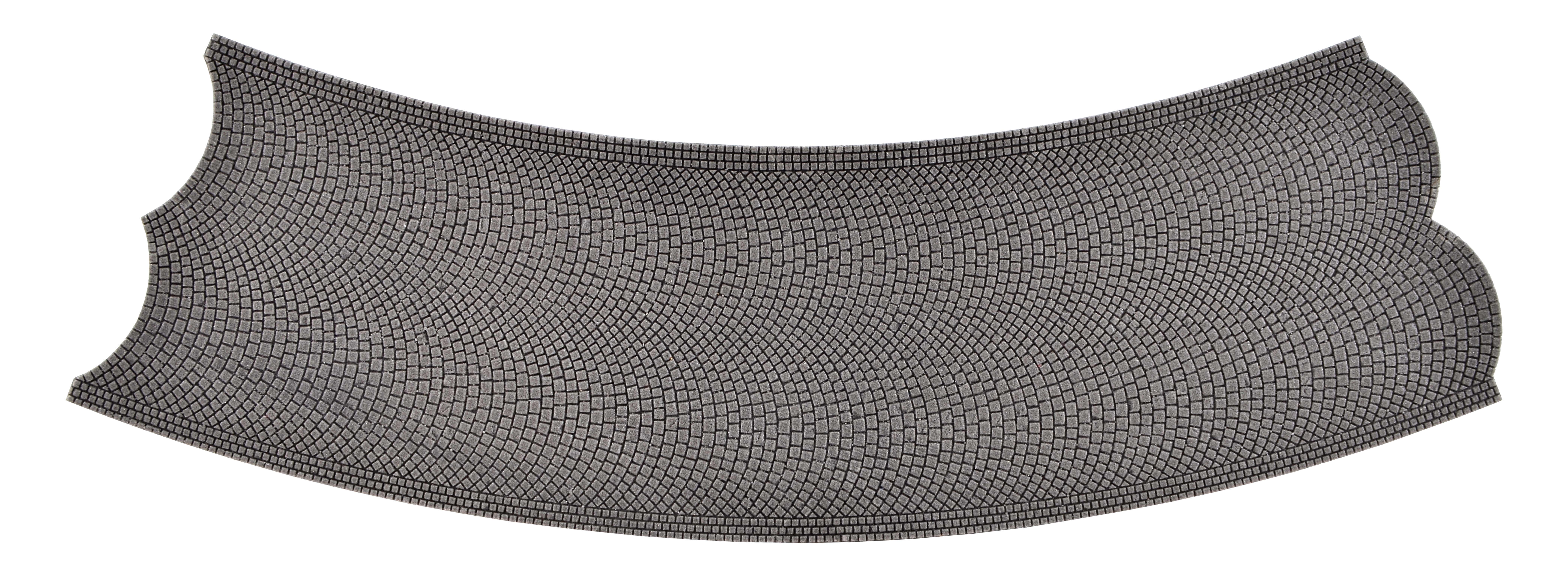 H0 Straßenplatte Kopfsteinpflaster aus Steinkunst, 45°-Kurve, gegenläufig, Radius 30 cm"