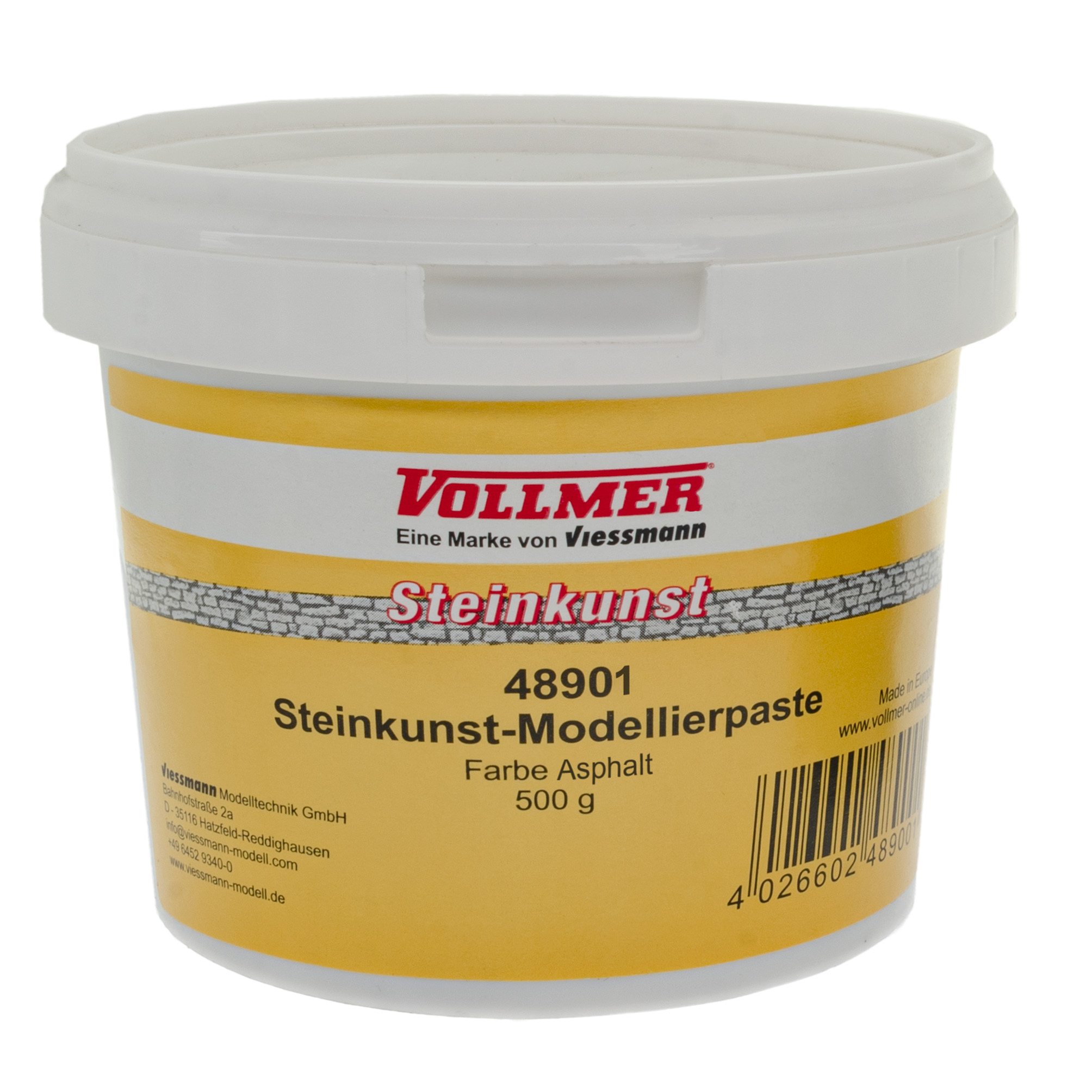 Steinkunst-Modellierpaste, Farbe Asphalt, 500 g - Wetterfeste und wasserverdünnbare Modellierpaste. Diese Paste ist farblich auf die Vollmer Asphaltstraßen abgestimmt. Sie kann auch für größere Flächen verwendet werden.