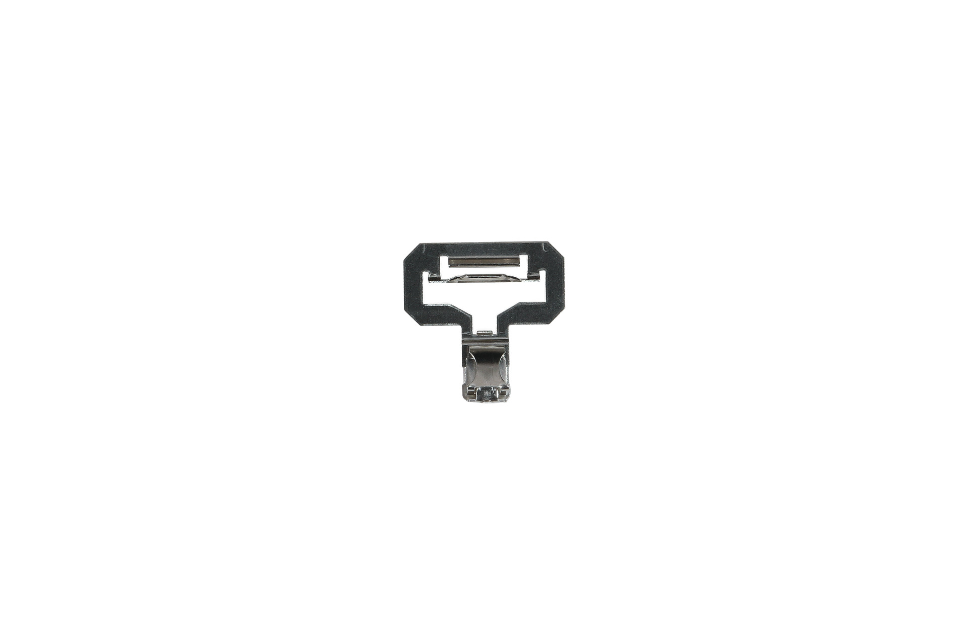 Anschlussklemme, 1-polig. Anschlussklemmen können nur an den Schienenverbindern am jeweiligen Schienenstoss angesteckt werden, z. B. vor oder nach Trennstellen, bei Signal-Schaltungen.