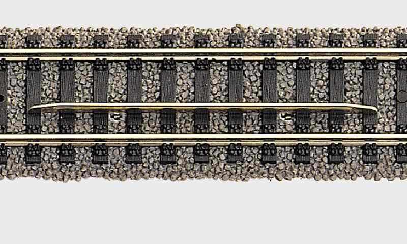 Schaltschiene, 1-polig. Zur Auslösung von Schaltimpulsen für Weichen, Signale etc. durch fahrende Loks. An jeder Stelle der Anlage einsetzbar. Packungsinhalt: 1 Plastikbolzen, 1 Halteteil und 1 Anschlussklemme, 1 Schaltschiene.