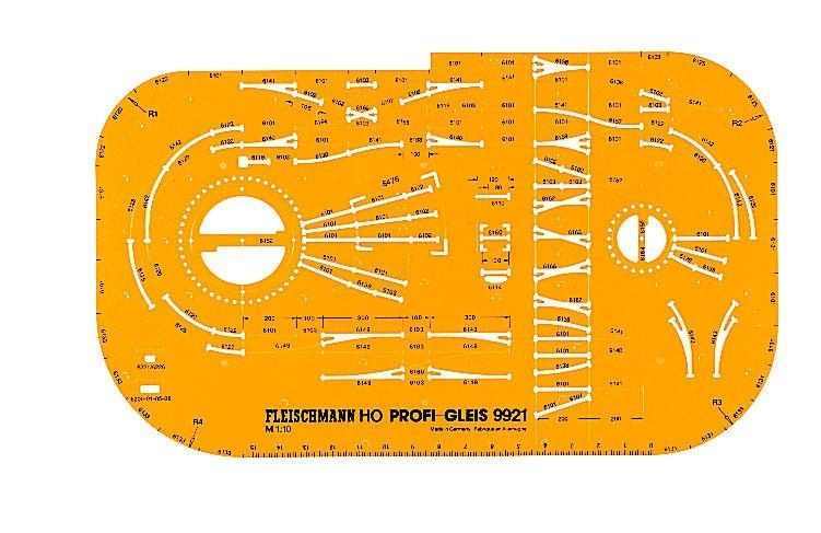 Eine unentbehrliche Hilfe für die individuelle Anlagenplanung. Transparent, aus gelbem Kunststoff. Im Maßstab 1:10