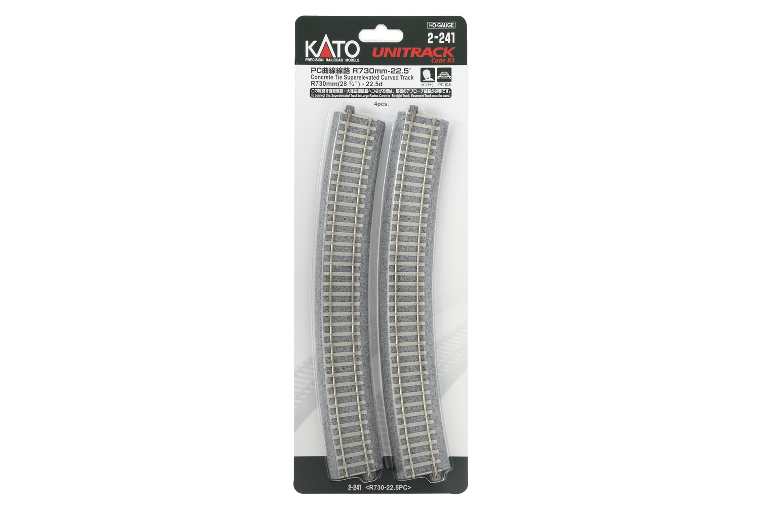 Kato 2-241 Gleis gebogen R730 22,5° überhöht, 4 St.