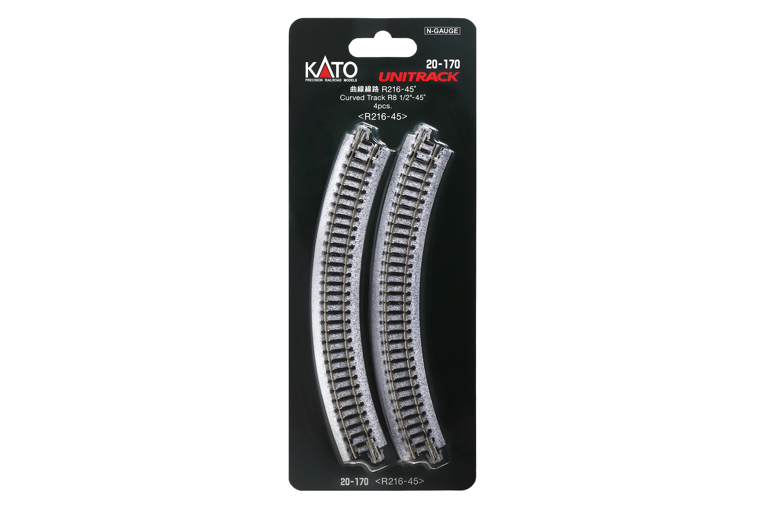 Kato 20-170 Gleis gebogen R216 45°, 4 St.